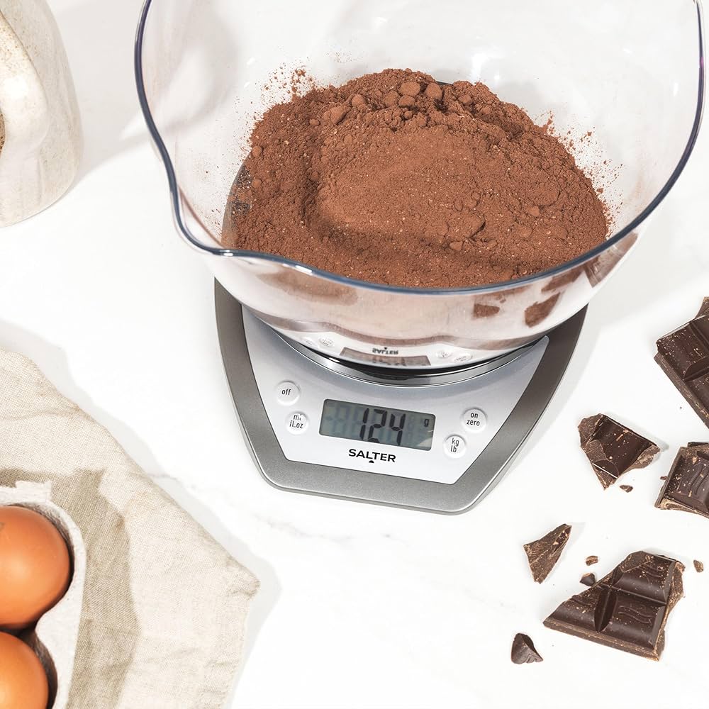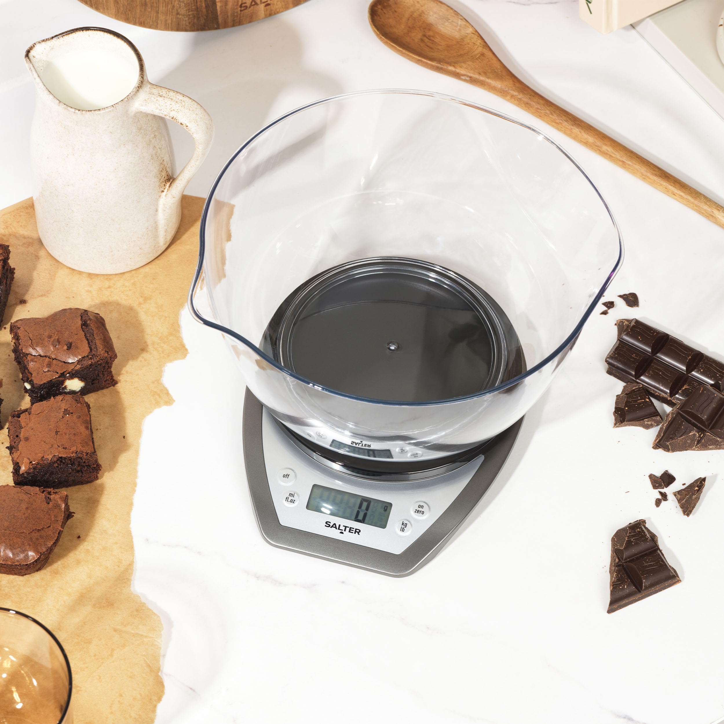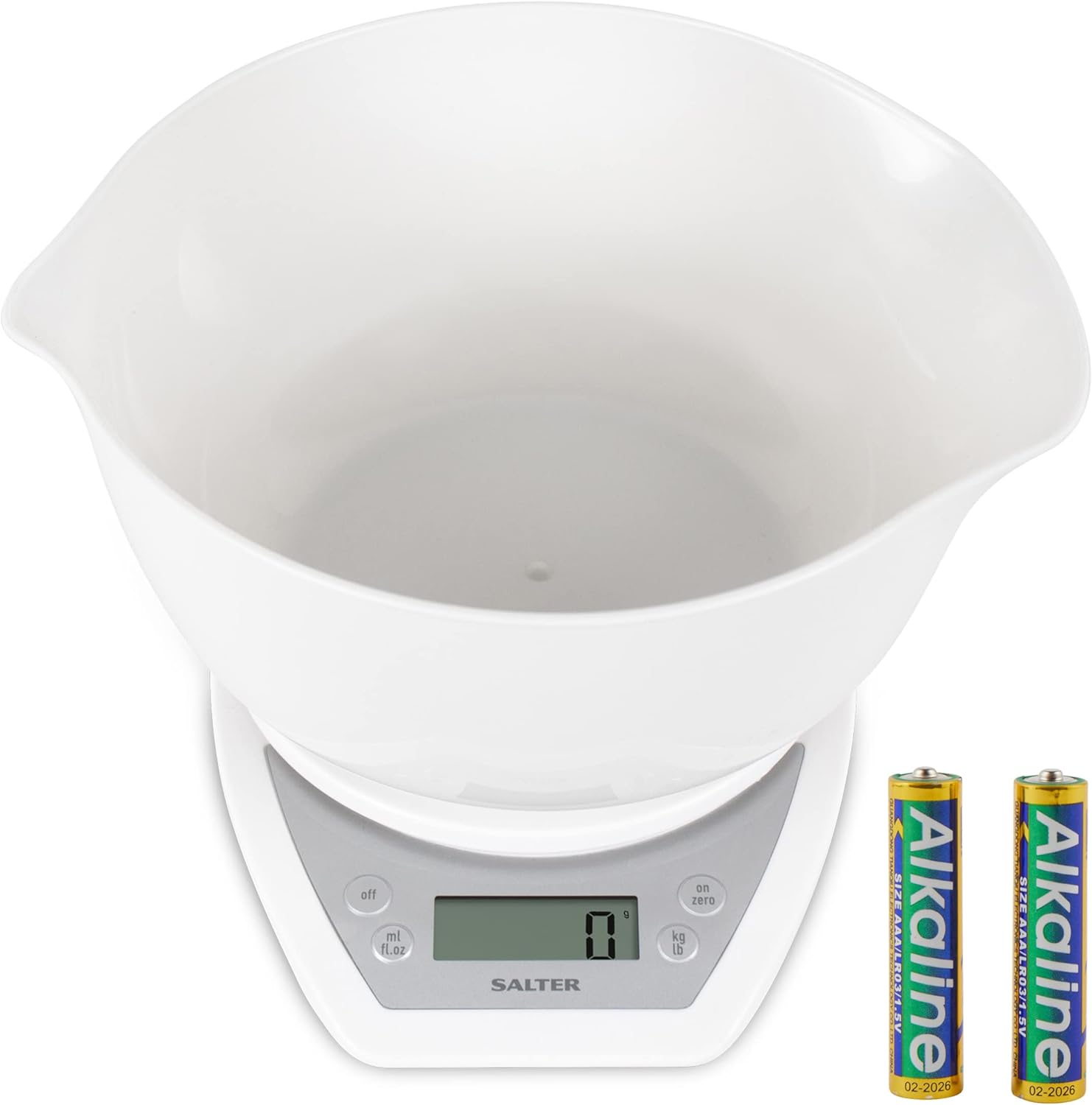 MISURAZIONE DEL LIQUIDO: Dotato di una funzione Aquatronic, questa bilancia misura liquidi e fluidi, eliminando la necessità di un recipiente di misurazione. Display di facile lettura Questa pratica bilancia digitale per cucina è dotata di un ampio display di facile lettura. Peso massimo x risoluzioni: 5 kg x 1 g, 11 lb x 1/8 oz, 5 l x 1 ml, 175 fl. oz x 1/8 fl. oz oz, mantenendo tutto in ordine Ciotola da 2 litri con doppio beccuccio, ideale per versare ingredienti sia solidi che liquidi Possibilità di alternare sistema metrico e imperiale Le bilance da cucina digitali Salter sono costruite con sensori di precisione adatta e un display LCD chiaro e facile da leggere, in modo da poter pesare il cibo e gli ingredienti in modo accurato e con una capacità elevata di 5 kg in 1 g Funzione Aquatronic per misurare i liquidi in ml o fl. oz Combinando precisione ed elegante design, abbiamo utilizzato la nostra esperienza nella preparazione degli alimenti per offrirti le migliori pentole e accessori da cucina. CIOTOLA INCLUSO: Il ciotola incluso può contenere fino a 2 litri di ingredienti ed è lavabile in lavastoviglie per una pulizia rapida e facile dopo l'uso. È possibile passare dalle unità metriche a quelle imperiali semplicemente premendo un pulsante La funzione Aggiungi e pesa consente di pesare più ingredienti contemporaneamente, riducendo il numero di contenitore da pulire. Salter 1024 Bilance elettroniche da cucina con ciotola a beccuccio doppio Disponibile in argento o bianco Cuocere al forno è facile, veloce e divertente con l'originale bilancia da cucina a beccuccio doppio di Salter. Salter Bilancia Cucina Salter, Bilancia Da Cucina Digitale Con Funzione Tagliere, Bilancia Con Piatto In Vetro Antigraffio, Ampio Display LCD, Capacità 5 Kg, 23x17 Cm, Acciaio Inox Cromato E Bianco Bilancia Cucina Salter Prezzo Aggiungi e pesa Per aggiungere e pesare più ingredienti in un unico recipiente e preparare le pietanze più rapidamente. FUNZIONE DI TARE: La funzione di tara digitale significa che è possibile pesare più ingredienti in un unico recipiente semplicemente premendo il pulsante zero per ridurre il tempo dedicato alla pulizia. Questa funzione consente di risparmiare tempo per il lavaggio, riducendo il numero di recipienti da pulire.