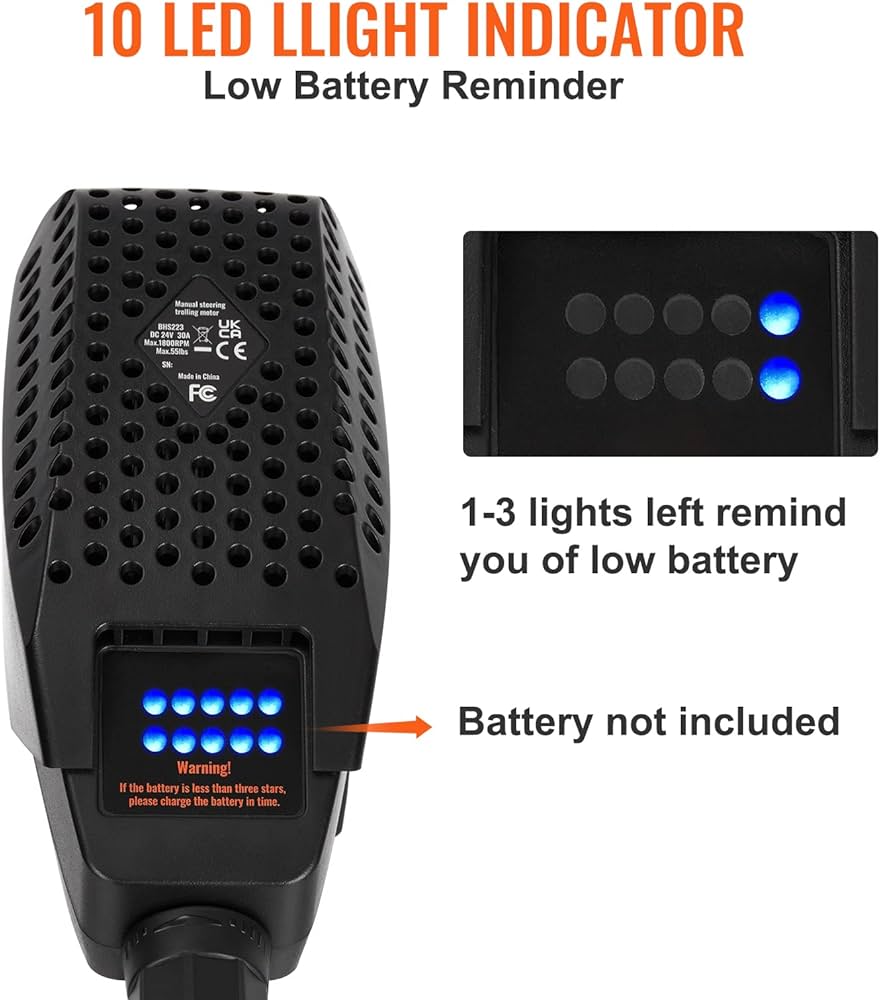 fuoribordo motore bf cv manuale prodotto vio barra bf10 bf20 Angolo regolabile: l'angolo di inclinazione dell'albero principale può essere regolato entro 90° per soddisfare diverse profondità dell'acqua e ridurre notevolmente la possibilità che le rocce sottomarine colpiscano il motore. Design intuitivo: l'albero principale regolabile in lunghezza (23,61-47,22 pollici) consente diverse profondità di ripresa della macchina. FORTE POTENZA Il motore a spazzola da 660w realizzato in rame puro, con una spinta fino a 66 libbre e una velocità massima di 6-8 km/h (la velocità dipende dall'ambiente, dall'acqua e dal carico della barca), offre prestazioni forti per una guida stabile e veloce. Azionamento elettrico: rispetto ai motori a benzina, questo fuoribordo elettrico è più silenzioso (50 dB), senza emissioni di gas di scarico e con meno perdita di calore, rendendolo più ecologico ed efficiente. Fuoribordo Elettrico Aohuada Motore , Motore Per Barca, Potenza 10 Motore Elettrico Per Kayak La maniglia telescopica può essere allungata fino a 70 cm per adattarsi alla tua altezza e offrire un'esperienza di navigazione confortevole.