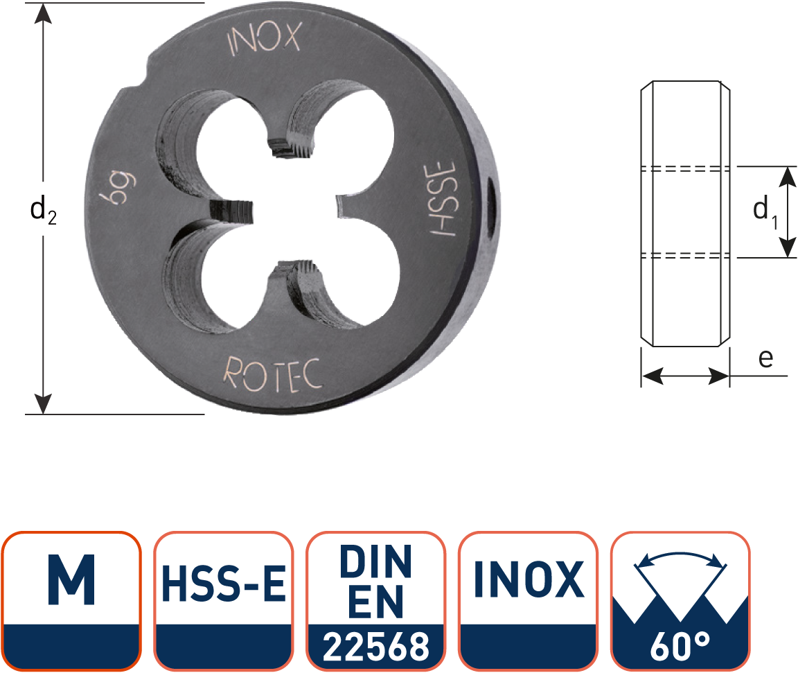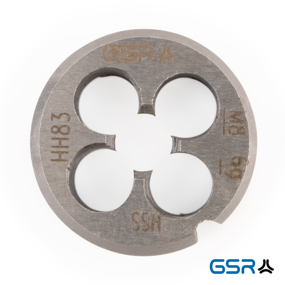Filiera Per Filettatura Fustella Filettata 549 Alfa Utensili | ASTORI Ferramenta Elicoidi M8 Realizzato in acciaio per utensili ad alta lega e ad alta velocità Per tagliare una filettatura esterna, il materiale da tagliare deve avere già un diametro nominale pari a quello della filettatura desiderata Fustella realizzata in acciaio ad alta velocità ad alte prestazioni. Per filettature esterne metriche a norma DIN ISO 13. Acciai non legati e a bassa lega fino a 800 N/mm², ghisa malleabile e metalli non ferrosi. Per tagliare una filettatura esterna, il Il filo viene tagliato in un'unica operazione
