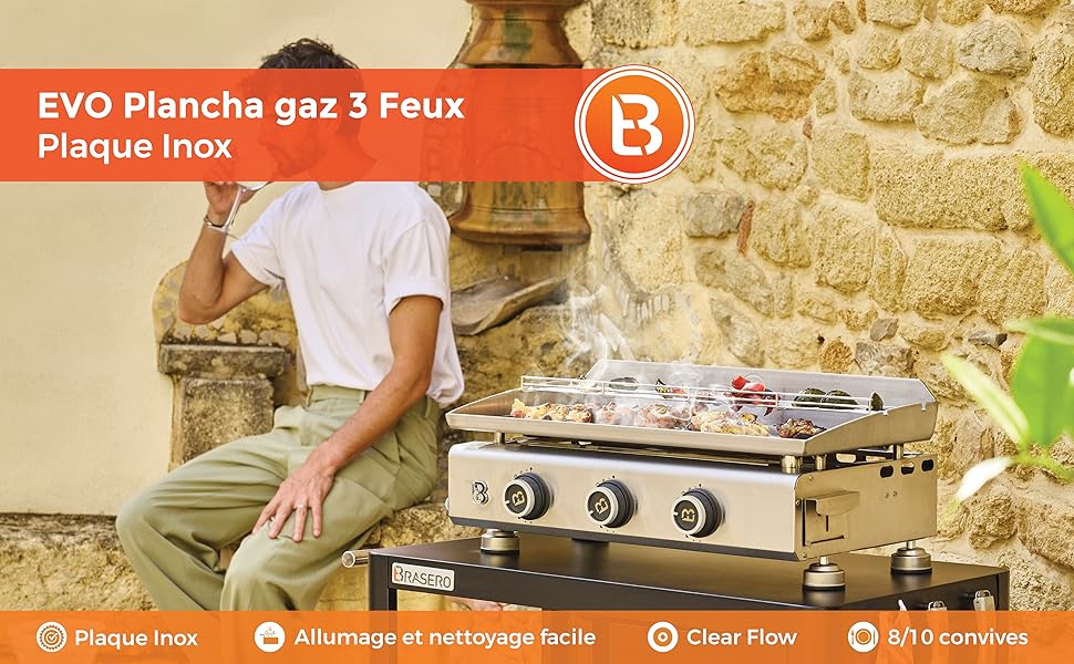 Ideale per pasti amichevoli, vi accompagna nella preparazione di piatti vari ed equilibrati, dall'antipasto al dessert, anche ai pasti improvvisati. Il cassetto raccogli grasso laterale, dotato di una maniglia ergonomica, si rimuove facilmente per una rapida manutenzione. Piastra Elettrica Per Grigliare BRASERO - Plancha Silvia II G Noir 3 Feux Brasero - Surface Cuisson 67 X 34 Cm - 3 Brûleurs - Plaque Inox - Grille De Réchauffement - Piezo Intégré - Tiroir Graisse - Jusqu'à 8/10 Convives - 7,5 KW Lotus Grill Xl Plancha Silvia EVO 3 Feux - BRASERO - Plaque Inox de 67 x 34 cm - Piezo intégré - Tiroir graisse avec jauge de niveau - 7,95 kW : EN STOCK chez Gamm vert - Large choix de produits au meilleur prix - Livraison en magasin offerte dès 30€ d'achat - Paiement L'ampia superficie di cottura (67 x 34 cm) si adatta a tutte le tue ricette. Cucina sana e gustosa: grazie alla sua piastra antiaderente in acciaio inox, la Plancha Silvia EVO permette di cucinare senza aggiungere grassi, offrendo una sana alternativa al barbecue tradizionale. Progettato per un uso fluido e intuitivo, garantisce un'esperienza piacevole ad ogni cottura. La piastra in acciaio inox di 5 mm di spessore garantisce un rapido aumento della temperatura e un'eccellente inerzia termica, per cucinare accurate e gustose in pochi minuti. Carne, pesce, verdure o anche dessert, garantisce una cottura accurata e omogenea per sublimare tutte le tue ricette. I pulsanti dentellati offrono un'ottima presa anche con mani grasse o bagnate, per una regolazione precisa e sicura. La piastra Silvia EVO combina prestazioni e design con i suoi 3 bruciatori (7,95 kW) e la tecnologia Stable Flame, fornendo un calore omogeneo sulla sua piastra in acciaio inox da 5 mm. Ampia superficie di cottura per una maggiore flessibilità: con la sua superficie di cottura in acciaio inox di 67 x 34 cm, la Plancha Silvia EVO permette di preparare più alimenti contemporaneamente. Grazie alla tecnologia Stabile Flame, i suoi bruciatori rotondi garantiscono un calore omogeneo su tutta la superficie. Dotata di tecnologia Clear Flow con recuperatore di grassi a manometro trasparente e bottoni a strisce, combina eleganza, comfort e innovazione firmata Brasero.