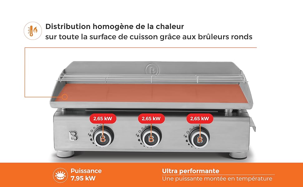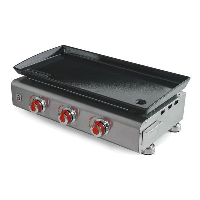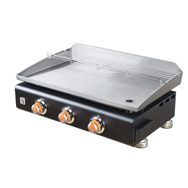 BRASERO - Plancha Silvia II G Noir 3 Feux Brasero - Surface Cuisson 67 X 34 Cm - 3 Brûleurs - Plaque Inox - Grille De Réchauffement - Piezo Intégré - Tiroir Graisse - Jusqu'à 8/10 Convives - 7,5 KW