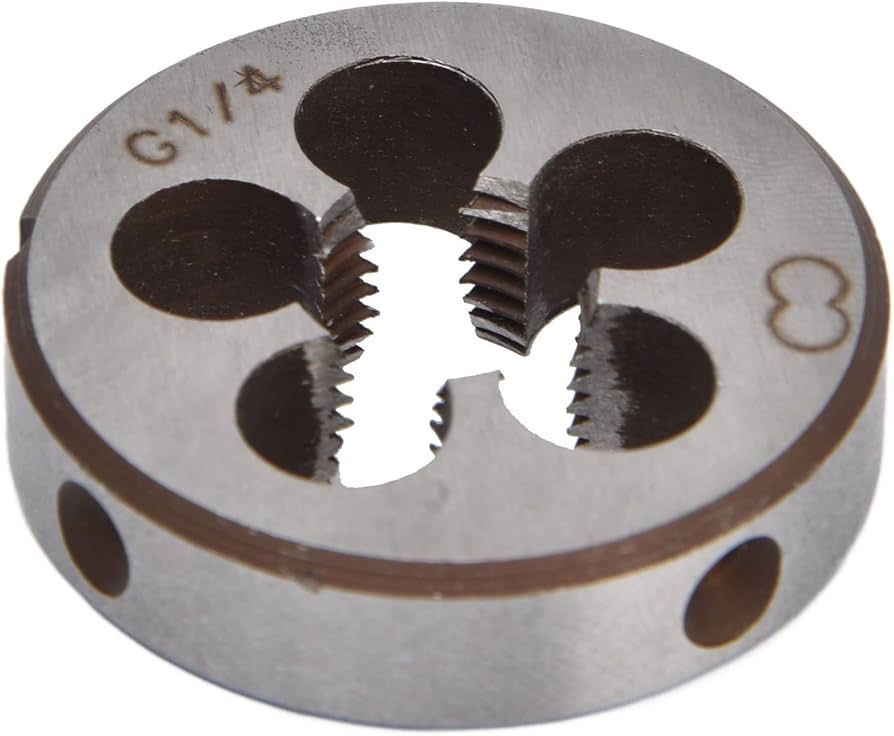 Facile installare: leggero in peso e di dimensioni compatte, la facile installazione può essere rapimente rifinita. Tipo di articolo: thread die Materiale del prodotto: acciaio in lega Modello di prodotto: G1/4 Spessore del prodotto: ca. 10 mm/0.39in Numero foro del chip: 5 diametro esterno: ca. 38 mm/1.5in dei pacchetti : 1 x thread mot Buon materiale: forgiato con acciaio in lega premium con forte tenacia, non facile avere denti rotti. Orenic Filiera G1/4 Lega Di Acciaio 5 Fori Per Trucioli, Set Di Filiere Lavoro accurato: garantire un'elevata precisione nel taglio, anche il grande effetto di lavoro ha un'elevata efficienza.