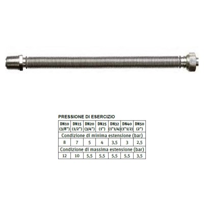 TUBO GIUNTO FLESSIBILE ESTENSIBILE ACCIAIO INOX PER ACQUA