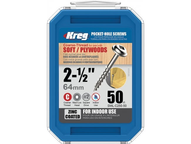 KREG Zinkschraube 51 mm mit grobem Gewinde, 50 Stück, SML -C2- 50 -INT Empfehlungen N /A Holzbearbeitung 25/32/38/ 50 /63 mm Taschenlochschrauben PH2 Kreuzschlitzschraube selbstschneidend für Taschenlochvorrichtung, 100 Stück KREG EUROPE GMBH. Vis Zinc KREG 51 Mm Avec Filetage KREG - Vite zincata, 51 mm, con filettatura grossa, confezione da 50 viti, SML-C2-50-INT