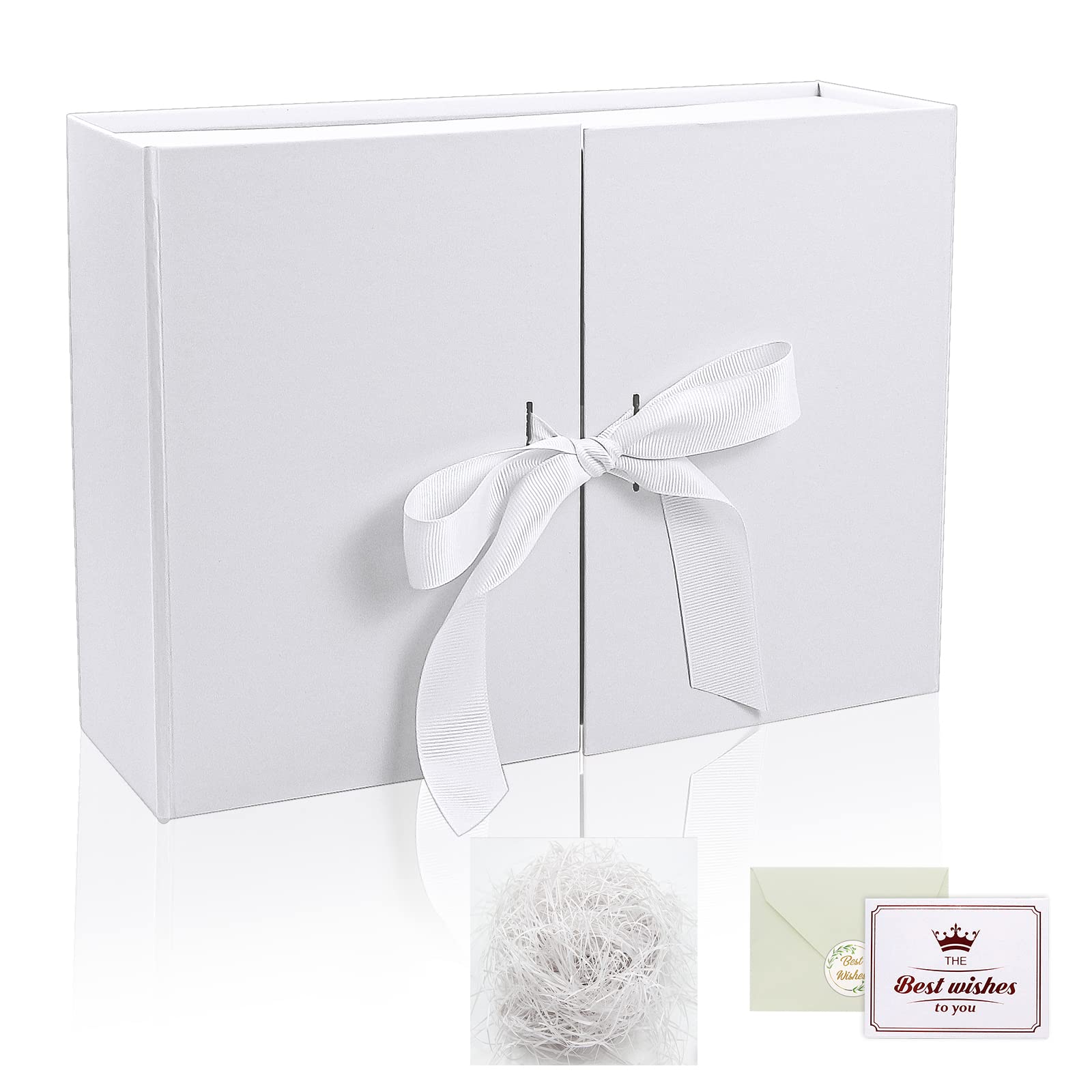 [Contenuto della Confezione]:riceverai 1×confezione regalo con coperchio,1×borsa regalo,1×biglietti di auguri,1×fiocco,rafia 20g,è molto adatto per l'imballaggio di regali. Basta strappare l'adesivo triangolo bianco,assemblare e incollare la scatola per trasformarla in una bella confezione regalo Pacco A Sorpresa GZLFH Scatola Regalo Con Fiocco, Confezione Regalo Pieghevole Con Scatola Porta Buste Matrimonio Materiali di Alta Qualità:scatole regalo realizzato in cartone spesso e rinforzato,non è solo elegante e bello,ma anche molto resistente [Facile da Usare]:confezione regalo e stato piegato quando è stato ricevuto. Adatto per regali aziendali,cerimonie di laurea,matrimoni,regali di compleanno,anniversari,natale, ringraziamento e altre occasioni. [Formato Della Scatola Regalo]:la dimensione di confezione regalo è 26×19×8cm/10,23×7,48×3,14 zoll (lunghezza×larghezza×altezza). È la dimensione perfetta per le piccole e medie dimensioni regali [Ampiamente Usato]:Il nostro scatola per regalo è molto adatto per i festival e l'imballaggio quotidiano.