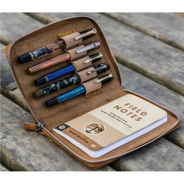 Galen Leather Writer's Bank Bag Crazy Horse Brown | Portapenne Pelle