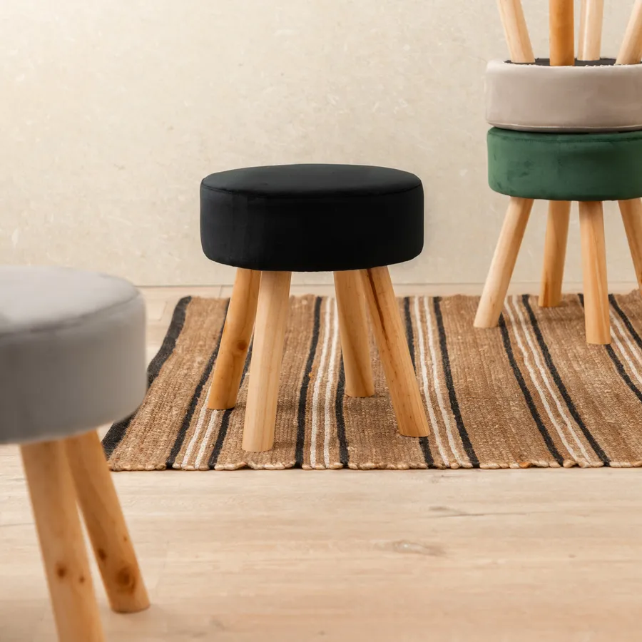 Sgabello Con Gambe In Legno Velluto Crema | Leroy Merlin