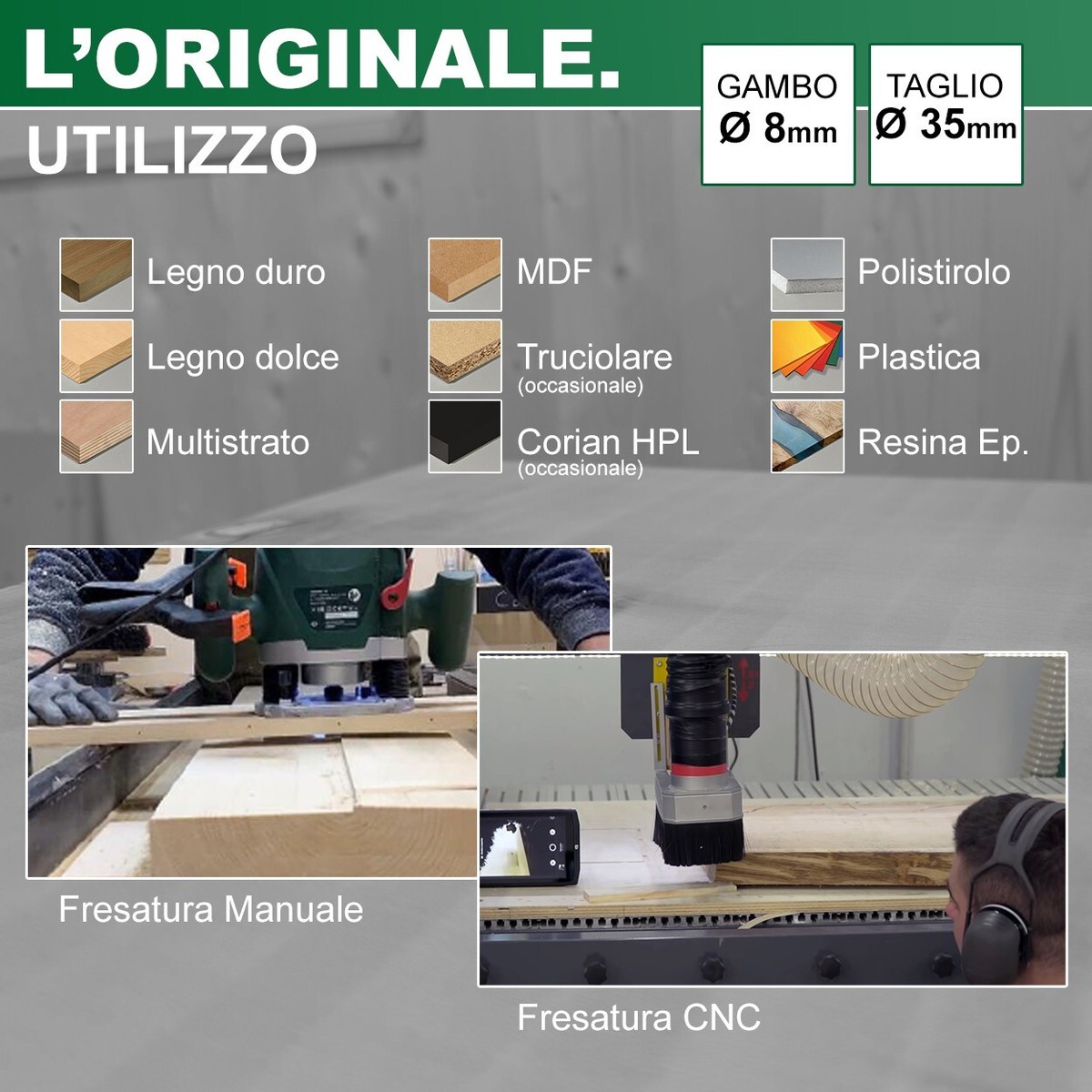 Banco Fresa Per Legno FRESA PER SPIANARE Legno Gambo 8Mm, Surfacing Router Con Diametro Di Taglio 39 M EUR 89,92 - PicClick IT Frese Per Legno DEEFIINE Fresa per spianare legno massello per Fresatrice verticale legno, diametro 35 mm e gambo 8 mm, Fresa per Superfici a 3 lame Trova una vasta selezione di Fresa Spianare a Fresatrici e frese elettriche per il bricolage e fai da te a prezzi vantaggiosi su . Scegli la consegna gratis per riparmiare di più. Subito a casa e in tutta sicurezza con La punta punta tagliente in carburo, corpo in acciaio super forte con design anti-kickback Per CNC e altre frese automatiche nonché frese portatili manuali e desktop. Come macchina per incisione per lavorazione del legno, tagliatrice, ecc Tutti gli inserti in metallo duro a 4 tagli possono essere utilizzati, gli inserti in metallo duro possono essere sostituiti se necessario, non l'intera punta del trapano. Il materiale è lavorazione di precisione CNC dopo il trattamento termico, quindi la sua deformazione è molto piccola, è più stabile nella rotazione ad alta velocità, il prodotto finito ha una finitura migliore e la lama è più durevole