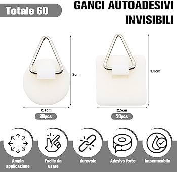 Design posteriore adesivo, pellicola protettiva da incollare, può aderire saldamente, forte assorbimento, facile da usare. Puoi regalarli ai tuoi amici o familiari, rendendo la tua casa più bella e artistica, buon aiuto per la decorazione della casa USO VERSATILE: il ganci quadri adesivi è utilizzato per ganci per quadri incollati, perfetti per appendere cornici per foto, cornici per quadri, murales, opere d'arte e altri oggetti decorativi per aggiungere un tocco personale alla vostra stanza. MATERIALI DI QUALITÀ: supporti per quadri, ganci per quadri senza foratura, i appendini adesivi sono realizzati con materiali di alta qualità e hanno una struttura in lino, offrendo una possibilità di appendere i quadri in modo sicuro e stabile. Gancetti Adesivi Tomedeks 12 Pezzi Ganci Autoadesivi Invisibili, Autoadesivi Per Piatti Con Gancio In Metallo Ganci Adesivi Plastica,Ganci Adesivi Per Quadri,Appendi Quadri Senza Chiodi,Piazza Chiodi Adesivi Per Quadri Muro SET VERSATILE: ganci adesivi per quadri, ganci per quadri, ganci autoadesivi per quadri, contiene 12 ganci adesivi per quadri, di tre forme - rotonda, quadrata piccola e quadrata grande - per quadri e decorazioni diverse. COYUN 12 Pezzi Ganci Autoadesivi Invisibili, Autoadesivi per Piatti con Gancio Ganci Gancetti Adesivi per Muro, per Appendere lastre di Plastica, Orologio,Foto, Pittura, Piatti, Appendi Quadro