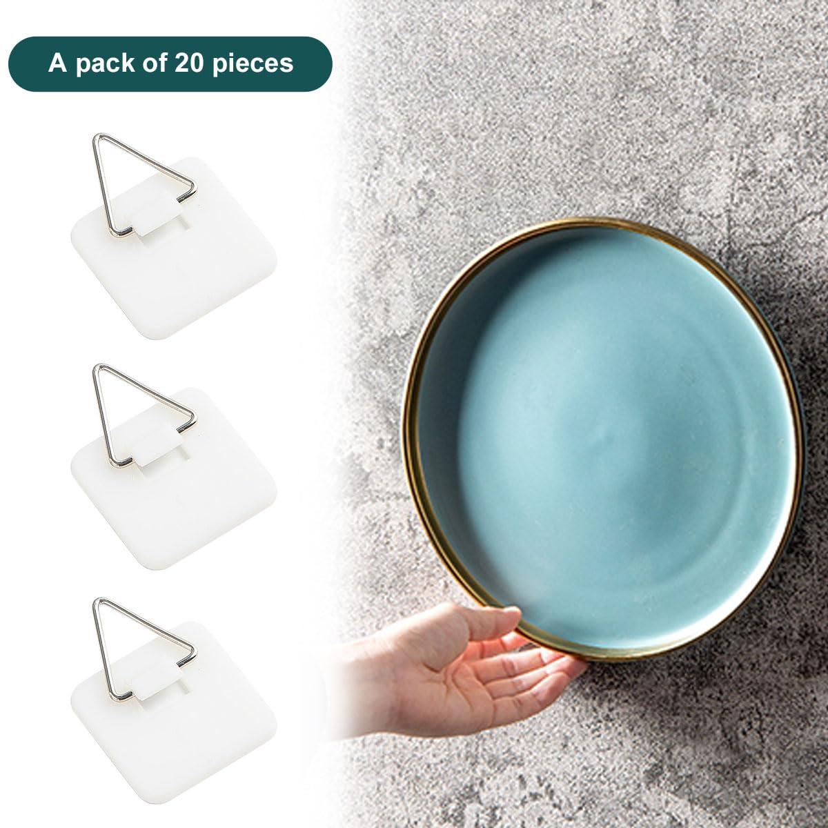 Tomedeks 12 Pezzi Ganci Autoadesivi Invisibili, Autoadesivi Per Piatti Con Gancio In Metallo Ganci Adesivi Plastica,Ganci Adesivi Per Quadri,Appendi Quadri Senza Chiodi,Piazza