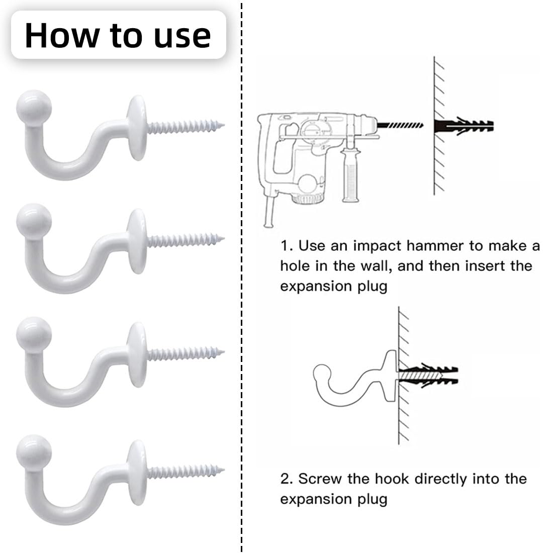 Ganci Per Fermatende DHWEKU 6 PCS Tenda Del Gancio U Holder In Lega Di Zinco Decorativi Con Spina Di Espansione Da Porta Parete Per Tenda Vestiti Chiave Ganci Bianco, Con Parti Di