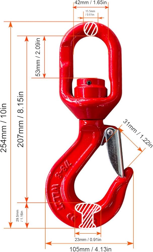 Rampa di sollevamento per furgone o camion Ampiamente utilizzato: i ganci per grucce sono utilizzati in macchinari, costruzioni, industria chimica, solitamente collegati a catene, funi e cavi per appendere, tirare o sollevare grandi attrezzature pesanti. Struttura solida: i ganci di sospensione sono realizzati in materiale compatto con un corpo rinforzato e ispessito per ridurre al minimo il rischio di distacco accidentale e migliorare la sicurezza nelle operazioni di sollevamento. Ganci A Scatto Per Sollevamento Gancio Con Carico Massimo 3T, Gancio Girevole Per Componenti Gancio Per Sollevamento The gancio di carico è una struttura solida con forte capacità di carico Informazioni di base: Gancio girevole modello-3T ganci di sollevamento sono realizzati in acciaio legato a basso tenore di carbonio, con un carico massimo di 3T e un peso del prodotto di 1240g/43.4oz.