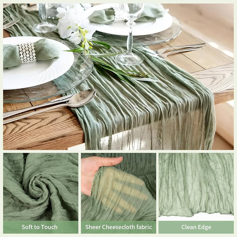 40-1 Pz Garza Runner Da Tavola Matrimonio Salvia Verde Runner Da Tavola Boho Cotone Garza Runner Da Tavola Per Banchetti/decorazioni Per Feste - AliExpress