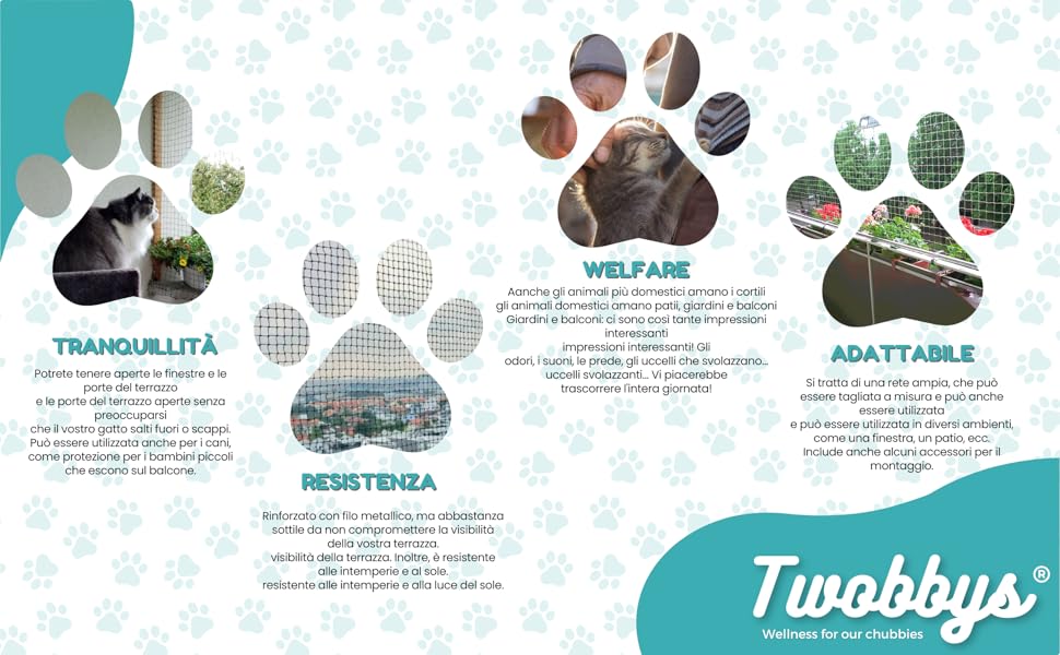 Taglio libero: ogni griglia della rete per gatti è indipendente, puoi tagliarla in forme rettangolari, romboidali, triangolari, circolari o altre forme speciali. Oppure può essere installata intorno all'orto per impedire ai piccoli animali di entrare nell'orto. 【Protezione di sicurezza/Migliore visuale】Rete per gatti balcone rinforzata può sopportare 50 kg di gravità, offrendo la protezione più sicura per il tuo gatto, così non devi preoccuparti che il tuo gatto si arrampichi quando nessuno lo guarda. 【Tagliabile e facile da installare】 Riceverai una rete per gatti tagliabile 3X4 m, una corda lunga 15 m, 1 istruzione di installazione e 20 ganci/tubi di espansione/fascette, che possono facilmente soddisfare diverse esigenze di installazione. Descrizione prodotto AQhui Rete per gatti rinforzata con filo d'acciaio Dettagli del prodotto Materiale: polietilene di alta qualità + metallo Accessori Può essere modellato in forme adatte a diversi scenari di installazione.Suggerimenti gentili 1. La dimensione del taglio deve essere leggermente più grande della dimensione effettivamente richiesta e i bordi devono essere piegati per migliorare efficacemente la stabilità. 2. Per motivi di imballaggio, la forma naturale potrebbe essere a forma di diamante. 【Applicazione multifunzione/multi-scenario】Rete protezione gatti non solo protegge i gatti dal correre liberamente su balconi, finestre, corridoi o terrazze. Rete Anticaduta Gatto Balcone AQhui Rete Per Gatti 3x4m, Retes Sicurezza Gatti Rinforzata Con Rete Anti Uccelli Materiale selezionato: il polietilene è una resina termoplastica con numerosi vantaggi e un'ampia gamma di applicazioni. Può anche essere utilizzata come rete anti piccioni per impedire ai piccoli uccelli di entrare in casa. 【Rete per gatti rinforzata con filo d'acciaio】Rete per gatti è composta da 12 fili di polietilene ad alta densità (HDPE) e 1 filo di acciaio inossidabile, che è più resistente e durevole della normale rete per balcone esterno. Rete per gatti balcone utilizza la più scientifica spaziatura della griglia di 3 cm, che non solo garantisce la sicurezza, ma non limita eccessivamente il campo visivo, permettendo al tuo gatto di guardare lontano liberamente. Inoltre, rete gatti è pre-allungato, quindi non c'è da preoccuparsi che si abbassi o diventi morbido anche dopo un uso prolungato. Per trasformarlo in un rettangolo, basta trascinare le linee colorate ai quattro angoli. 【Resistenza agli agenti atmosferici/resistenza alla masticazione】Rete balcone per gatti può facilmente affrontare diverse condizioni meteorologiche estreme, con un'eccellente resistenza ai raggi UV, alla corrosione, all'ossidazione, ecc.
