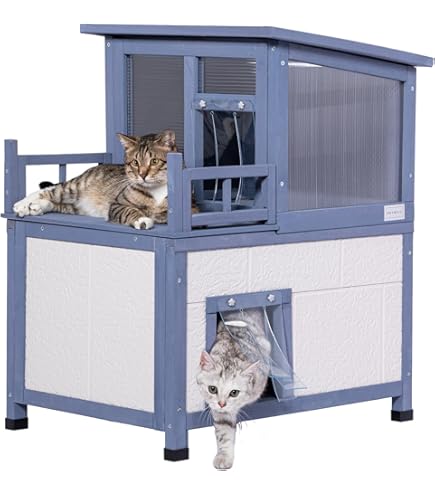 Casetta Per Gatti Da Esterni Con 2 Ingressi, 2 Gradini E 1 Balcone