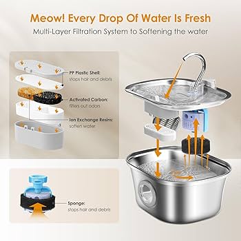La fontanella gatti è realizzata in acciaio inossidabile, rimovibile e lavabile in lavastoviglie, quindi è molto facile da pulire. Grazie alla qualità dell'acqua purificata, gli animali domestici possono bere l'acqua senza preoccupazioni. 【Materiale durevole】: Il nostro fontanella acqua gatti è realizzato in acciaio inossidabile di grado 304, che contrasta nettamente con la fragilità della plastica e simboleggia la robustezza del prodotto. Le migliori offerte per Fontanella per Gatti Acciaio Inox 3.2L, Fontana per Gatti Ultra Silenziosa Con 2 sono su Confronta prezzi e caratteristiche di prodotti nuovi e usati Molti articoli con consegna gratis Il beccuccio del rubinetto è progettato per attirare i gatti e questo fontanella acqua gatto è come un parco acquatico per gattini. Una fontanella per gatti può fornire al tuo animale domestico acqua potabile viva per 5-7 giorni, rendendo il tuo viaggio senza preoccupazioni. Fontana Per Gatti NICREW Fontanella Per Gatti E Cani Silenziosa, 2L Filtro Fontanella Per Gatti Il filtro a carbone è composto da vari materiali per filtrare efficacemente polvere e detriti fini e addolcire l'acqua. 【Progettazione finestra】: Il fontanella per gatti acciaio potabile con una finestra trasparente con LED, è possibile monitorare facilmente il livello dell'acqua e aggiungere acqua in tempo, non importa giorno o notte. L'acciaio inossidabile può anche resistere a una pulizia ad alta intensità, mantenendo l'fontanelle per gatti sempre pulito. 【Filtrazione multipla】: Fontanella Gatto Automatico utilizza sistemi di filtraggio multipli. Allo stesso tempo, puoi anche controllare e gestire l'assunzione giornaliera di acqua dei gatti per assicurarti che ricevano la giusta quantità di acqua, che aiuta a mantenere la salute e l'equilibrio idrico del gatto.