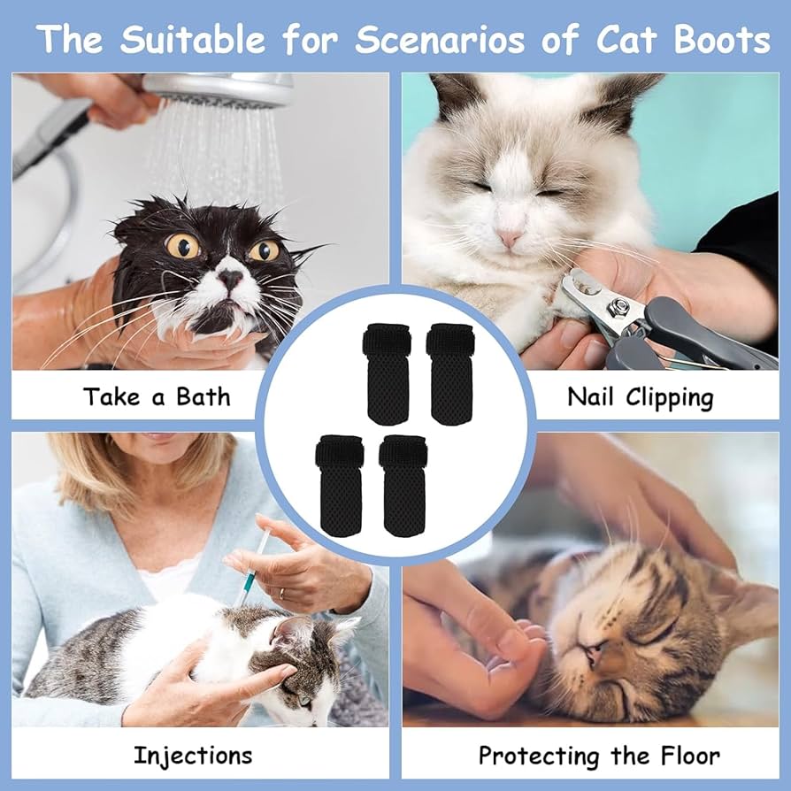 4 Pezzi Protezioni Per Zampe Per Cani, Gatti, Guanti Antigraffio Per Gatti, Regolabili In Rete, Protezione Per Zampe Per Gatti, Per Gatti In Rete Per Tagliare Le Unghie Animali Domestici Bagnetto