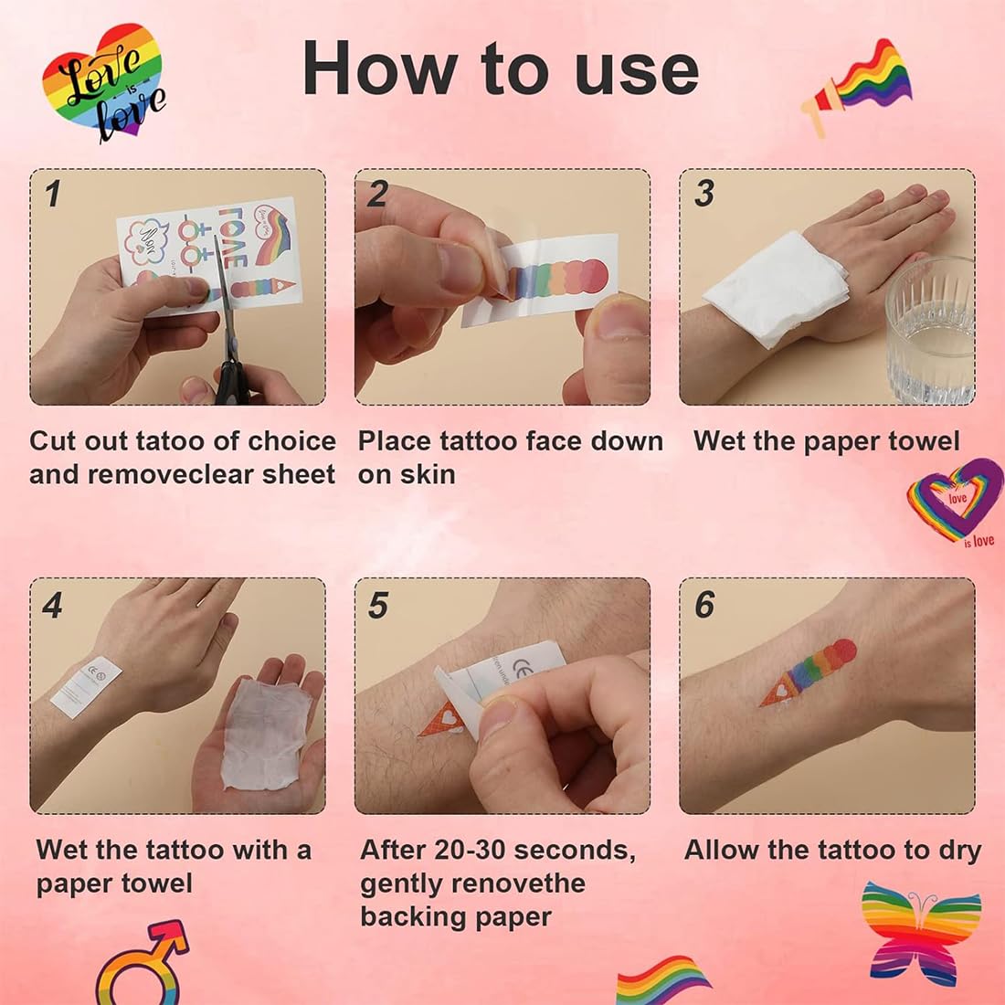 PHOGARY LGBT Gay Pride Tatuaggi Temporanei (100 Pezzi 20 Fogli