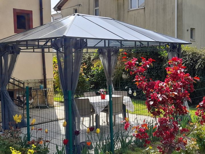 Questa tenda da sole è adatta per cortile, patio, giardino, bordo piscina e altre aree esterne.DIMENSIONI: Dimensioni complessive: 3.95L x 2.95P x 2.7Am Questa tenda da sole è adatta per cortile, patio, giardino, bordo piscina e altre aree esterne. DIMENSIONI: Dimensioni complessive: 3.95L x 2.95P x 2.7Am. Altezza gronda: 1.9m. Assemblaggio richiesto. USCITE ALL'ESTERNO CHE NON MORDONO: Utilizza la rete a maglie traspiranti del nostro gazebo da giardino per stare al fresco e goderti la brezza. STRUTTURA IN ACCIAO: Questo gazebo da giardino è realizzato con un telaio in acciaio per donare robustezza e resistenza. AMPIO UTILIZZO: Alto e grande, questo gazebo da esterno è abbastanza spazioso da permettere a te e agli ospiti di riunirsi all'interno senza problemi. Gazebo Con Tende Laterali Outsunny Gazebo Da Giardino 4x3m Con Doppio Tettuccio, Pareti In Outsunny Gazebo 4x3 Lascia entrare il bello e tieni fuori il brutto: utilizza le tende per la privacy in poliestere per la tua privacy e ripararti dall'aria.