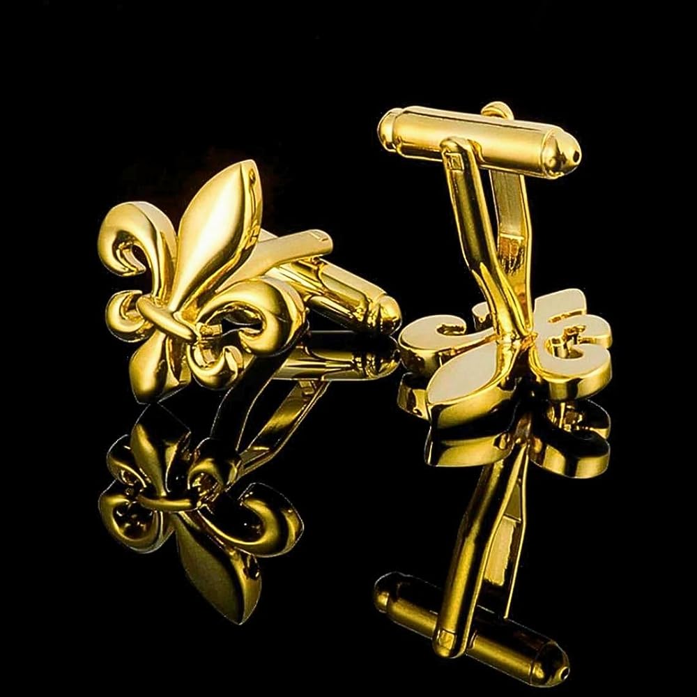 Gemelli Fiore Di Giglio Dorato,Gemelli Classici Ed Eleganti,Regalo Camicia Da Sposa Per Uomo,Accessori Uomo Design,Maniche Moschettiere Francese Lusso Giglio Colore O, Acciaio Inossidabile, Nessuno