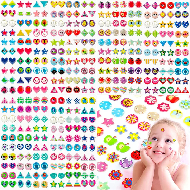 240 Piece Sticker Earrings 3D Gems Sticker Girls Sticker Earrings Self-Adhesive Glitter Craft