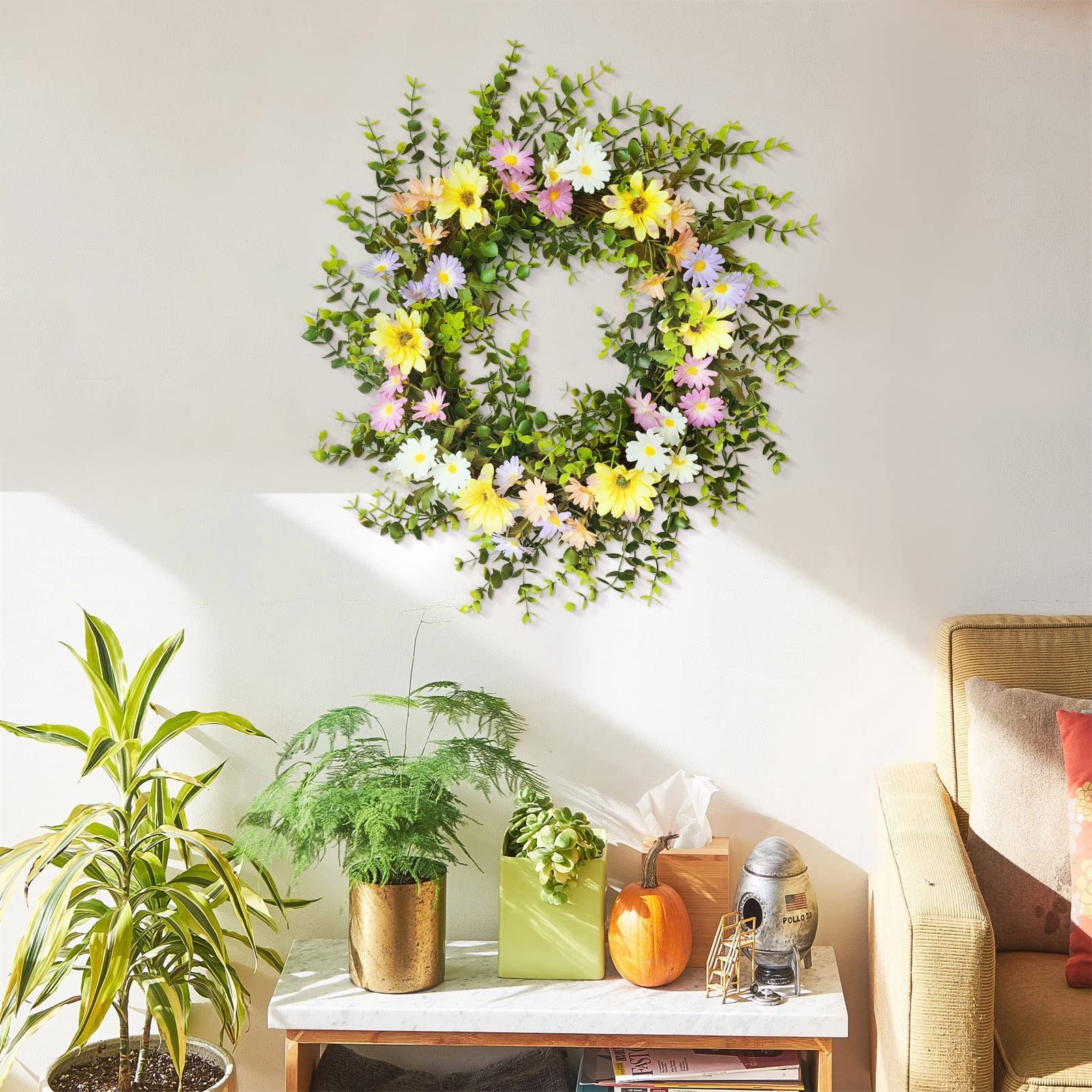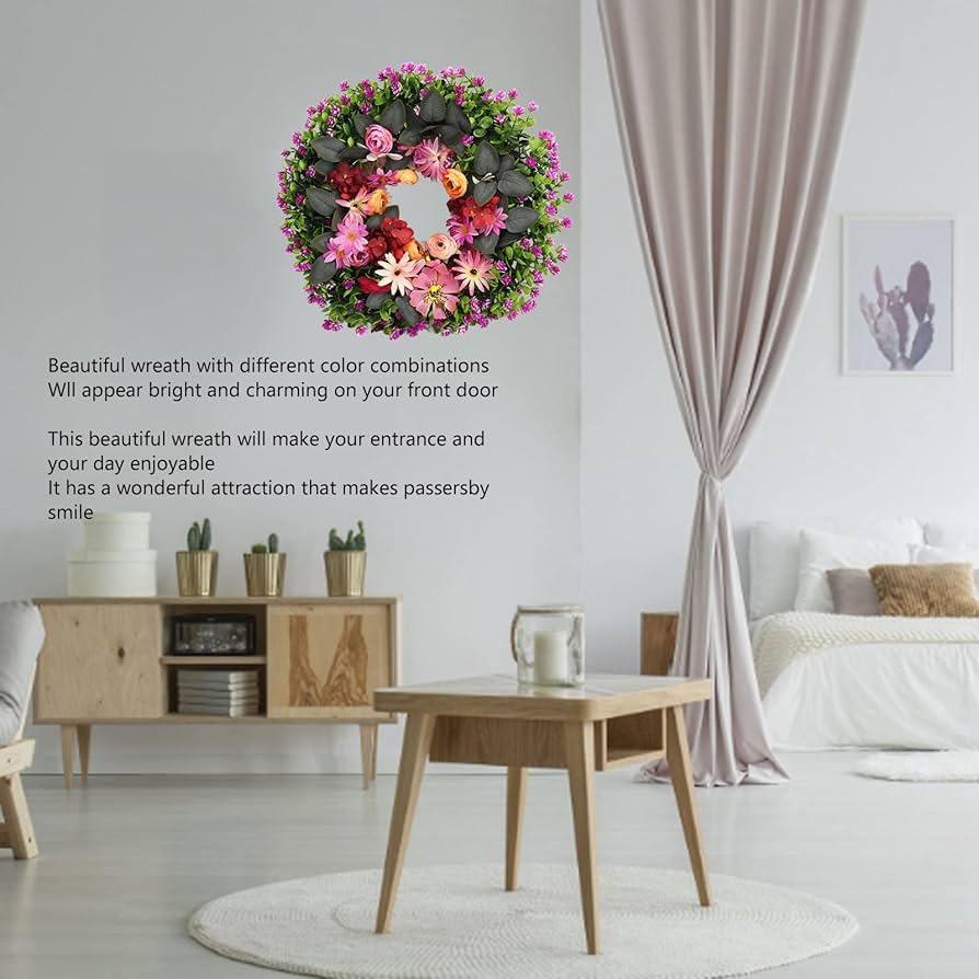 ✿ Dimensioni: il diametro esterno della ghirlanda di circa 42-45 cm e il diametro interno è di circa 30 cm. La ghirlanda di fiori accentata con foglie verdi crea un look romantico, ti garantisce vitalità indoor ed outdoor. Ordina Ghirlanda Per Porte Oairse Ghirlanda Di Eucalipto Per Porta Primaverile Estiva Con Perline Di Legno Artificiale Da Appendere Per Porta D'ingresso, Per Interni Ed Esterni, ... Centrotavola, Tavolino Da Caffè E Decorazioni Per La Casa (set Da 3), (7 Ghirlanda Di Ulivi Ghirlanda Per Porta, Primavera Estate Per Tutte Le Stagioni Ghirlande Da Porta Puoi regolarlo secondo necessità per ottenere il miglior look. ✿ Ottimo regalo: una bella ghirlanda non solo può decorare la tua casa in un'atmosfera romantica, ma è anche il miglior regalo per i tuoi cari per matrimoni, compleanni, Natale, San Valentino, festa della mamma, soggiorno, sala da pranzo, ecc. ✿ Materiale: i fiori sono realizzati in tessuto di seta e plastica, l'anello della corona è realizzato in rattan naturale, leggero e non sbiadisce facilmente, con una consistenza realistica e durevole. Trasforma la tua insipida porta d'ingresso in un ingresso vivace e attraente che accoglie la tua famiglia e gli amici più stretti nella tua casa. ✿ Ghirlanda di fiori decorativa: la ghirlanda è semplice, elegante e confortevole, forma naturale vivida.