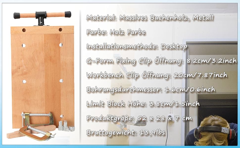 Banco Lavoro Morsa In Legno, 10 Pollici Banco Da Lavoro, Morsa In Ghisa Per Legno Pialla Panchina Pinze Morsetto Costruzione Lavoratore Morsa (senza Chiave Inglese E Stopper Tavoli Da Lavoro ✔ [Panca da lavoro portatile]: banco da lavoro con blocchi di metallo di alta qualità è estremamente robusto e resistente agli urti. ✔ [Materiale di alta qualità]: Workbench è realizzato in legno di faggio massiccio di alta qualità, molto forte, resistente agli urti e all'usura. ✔ [Ampiamente usato]: cavalletto da lavoro adatto per case, studi di lavorazione del legno e strutture didattiche per fissare e lavorare con il legno. Se avete domande, non esitate a contattarci, risponderemo e risolveremo il problema la prima volta che lo vedremo. ✔ [Design arrotondato]: gli angoli del tavolo da lavoro sono lucidati, lisci e senza sbavature, che proteggono le mani dai graffi e aumentano la sicurezza durante l'uso. Rispetto ai morsetti metallici, le mollette di legno non danneggiano il pezzo.