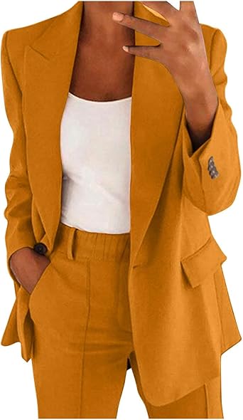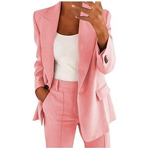 Tailleur Con Pantalone Da Donna, Completo Di Pantaloni Giacca Cerimonia Elegante Completo Casual Maniche Lunghe Set Due Pezzi Ufficio E Lavoro Blazer Completo Tinta Unita Business