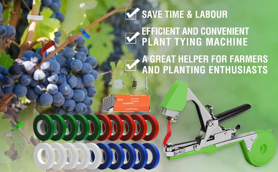 legatrice tying nastro attrezzi pinza orto melanzana vigneto adesivo rotoli verdura pomodoro frutta piante Inoltre riceverete un pratico sacchetto di stoffa per riporlo e un coltello di ricambio, tutto ciò di cui avete bisogno per lavorare in modo efficiente. Ampia gamma di accessori: la carta da parati viene fornita con 25 rotoli di nastro adesivo in PVC resistente e 20.000 robuste mollette 604C. Legatrice Da Giardino Attrezzi Elettrici Da Giardinaggio XCBCVHG Legatrice Per Piante Tying Legatrice Per Piante Prezzi MATERIALI DUREVOLI - Realizzato in acciaio galvanizzato e plastica ABS resistente, la carta da parati è resistente alla corrosione e offre prestazioni durature in qualsiasi condizione atmosferica. Applicazione versatile: ideale per l'uso su diversi tipi di piante come viti, pomodori, cetrioli, meloni e altro ancora, uno strumento indispensabile per giardinieri e agricoltori.