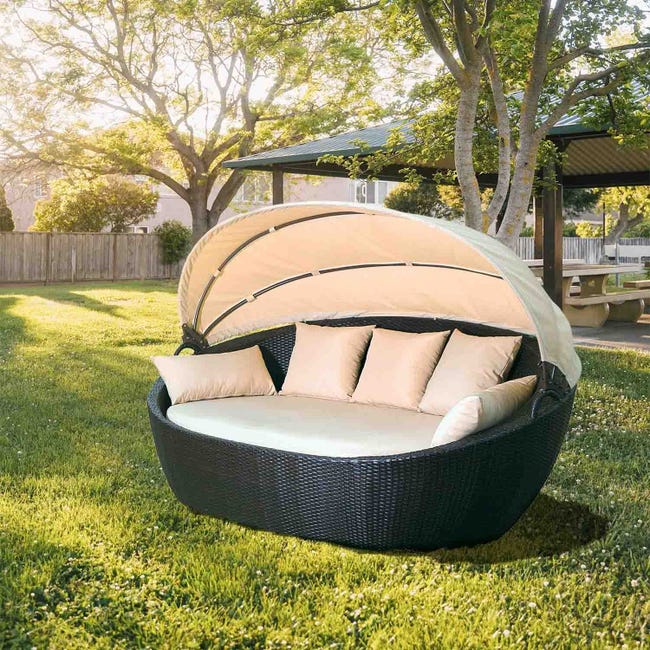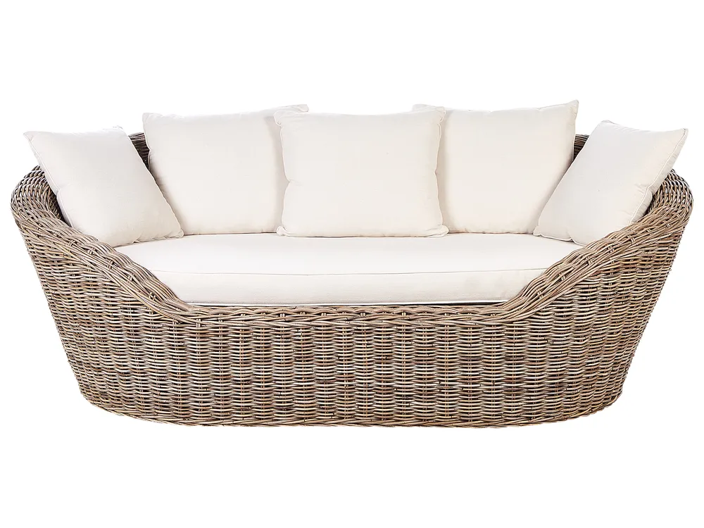 HEFZGDB Divano Da Giardino A 3 Posti Con Cuscini In Polyrattan