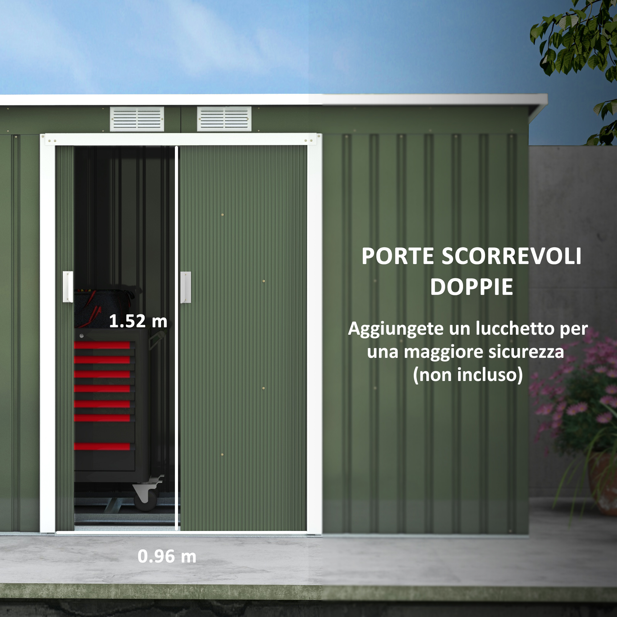 Il tetto leggermente inclinato protegge i tuoi oggetti dalla pioggia Il capanno stabile resiste agli agenti atmosferici e alla ruggine, perfetto per un uso prolungato all'aperto Aggiungi spazio e praticità all'area esterna di casa con questo capanno porta attrezzi di Outsunny. Il tetto zincato e impermeabilizzato consente di tenere al riparo le attrezzature più importanti, mentre le finestre di ventilazione riducono l'umidità e l'odore di muffa Outsunny Capanno Da Esterno Outsunny Casetta Da Giardino Porta Attrezzi In Acciaio 1.2x2x1.8m Con Base, Capanno Da Giardino Con Finestre Trasparente, Serratura, Porta Scorrevole, Tetto Inclinato, 2 Ganci E 2 Prese D'Aria, Grigio : Amazon.it: Giardino E Giardinaggio Outsunny Porta Attrezzi Comode porte scorrevoli doppie: le doppie porte scorrevoli salvaspazio facilitano l'accesso. Assicurati di indossare guanti resistenti al taglio e avrai bisogno di 2 persone per costruire Ventilazione confortevole: due prese d'aria forniscono luce, circolazione dell'aria e prevengono odori sgradevoli. L'ingresso è chiudibile a chiave (lucchetto non incluso) e offre sicurezza per i vostri effetti personali Struttura robusta: realizzata in acciaio zincato durevole con superficie resistente alle intemperie.