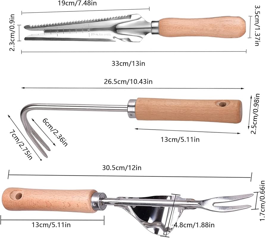 Il design ergonomico migliora il comfort della mano, riduce l'affaticamento e prolunga le ore di lavoro. 【Facile da usare】 La base della leva curva e la robusta forcella a forma di V rendono il diserbo manuale facile da usare. behone 2 Pezzi Estrattore per Giardino, Strigliatori con Manico in Legno Naturale, Garden estrattore Erbacce sarchiatrice Manuale per Scavare, estirpare, smuovere e allentare Il Terreno 【Comoda impugnatura】 L'impugnatura in legno è liscia e priva di sbavature, comoda da impugnare ed ergonomica. Ideale per estrarre e rimuovere cardi, denti di leone, erba di granchio, lenticchia d'acqua e altre erbe infestanti nel giardino. 【Regali da giardino】Il diserbo può essere un'esperienza molto frustrante. Basta appoggiare la base metallica curva a terra e scavare intorno alle radici per rimuovere le erbacce. 【Materiali di alta qualità】 La punta della forcella dell'estrattore di erbacce è realizzata in acciaio inossidabile di alta qualità con protezione dalla ruggine e un piacevole effetto lucidante, molto forte e affilato. 【Diserbo facilmente】 Questo strumento manuale per il controllo delle infestanti è molto utile in quanto ha una testa curva che offre una maggiore leva ed è più facile aprire le radici al centro. Con un comodo manico in legno, puoi tenere comodamente la mano durante il giardinaggio. Diserbante Totale 2 Pezzi Estrattore Per Giardino, Strigliatori Con Manico In Legno Legatrice Per Piante