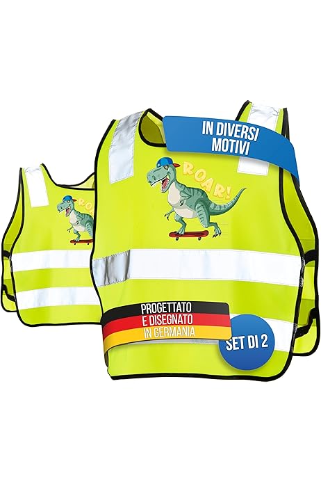 3 Gilet di sicurezza Gilet di segnalazione per bambini come set con una simpatica stampa di cani. Adatto a bambini da 2 a 12 anni Cintura elastica per adattarsi a diversi tipi di corpo. Amazon Gilet Gialli Exporee 3 Pezzi Gilet Fluorescente Bambino Giallo, Gilet Alta Visibilità Bambini, Gilet Riflettenti Traspirante Di Taglia Universale Per Bambini E Bambine : Amazon.it: Auto E Moto Gilet Da Lavoro È facile da indossare e togliere. Il tuo bambino sarà felice di indossarli. FACILE DA INDOSSARE E TOGLIERE: Il gilet di sicurezza per bambini è progettato in modo che i bambini possano indossarlo sopra una giacca per una maggiore sicurezza e visibilità. Taglia unica per bambini dai 2 ai 12 anni. COMODO E TRASPIRANTE: Il nuovo gilet di sicurezza per bambini è realizzato in tessuto a maglia resistente ed è più leggero e traspirante rispetto ad altri gilet. Strisce riflettenti per la massima riflettività e visibilità e protezione a 360 ° in tutte le condizioni atmosferiche, il giubbotto di segnalazione per bambini è visibile giorno e notte. Exporee 3 pezzi Gilet Fluorescente Bambino Giallo, Gilet Alta Visibilità Bambini, Gilet Riflettenti Traspirante di Taglia Universale per Bambini e Bambine I giubbotti di segnalazione per bambini sono adatti a tutte le attività all'aperto come corsa notturna, passeggiate con animali domestici, jogging, ciclismo, escursionismo, skateboard, sci, snowboard, equitazione, giochi per bambini e sicurezza stradale. Adatto a bambini dai 2 ai 12 anni. Funzione di visione notturna I materiali fluorescenti e le strisce riflettenti garantiscono visibilità giorno e notte. Come materiale, abbiamo utilizzato un materiale di sicurezza che viene utilizzato per i giubbotti di sicurezza. Gilet di sicurezza elastic Le cinghie elastiche sono molto elastiche, non ci sono fastidiose cerniere e sono facili da indossare. Il nostro servizio clienti cordiale è disponibile in qualsiasi momento! Garantisce maggiore sicurezza nel traffico stradale di giorno e di notte. SICUREZZA PER I BAMBINI: Il gilet di sicurezza per bambini di Exporee offre una visibilità ottimale al buio e riduce il rischio di incidenti sulla strada per la scuola o l’asilo. Ciò significa che i nostri gilet possono essere lavati senza problemi anche in lavatrice. ALTA QUALITÀ: Il gilet di sicurezza fluorescente per bambini è dotato di 6 strisce riflettenti (anteriore e posteriore) ed è adatto ai bambini da 2 a 12 anni. Tessuto traspirante Il gilet di sicurezza per bambini è realizzato in tessuto a maglia resistente. Sia sulla strada per la scuola, sulla strada per lo sport o per strada. Materiale leggero e traspirante per il comfort dei bambini. Elastico e buona adattabilità alla forma del corpo. Buona elasticità e adattabilità alla forma del corpo.