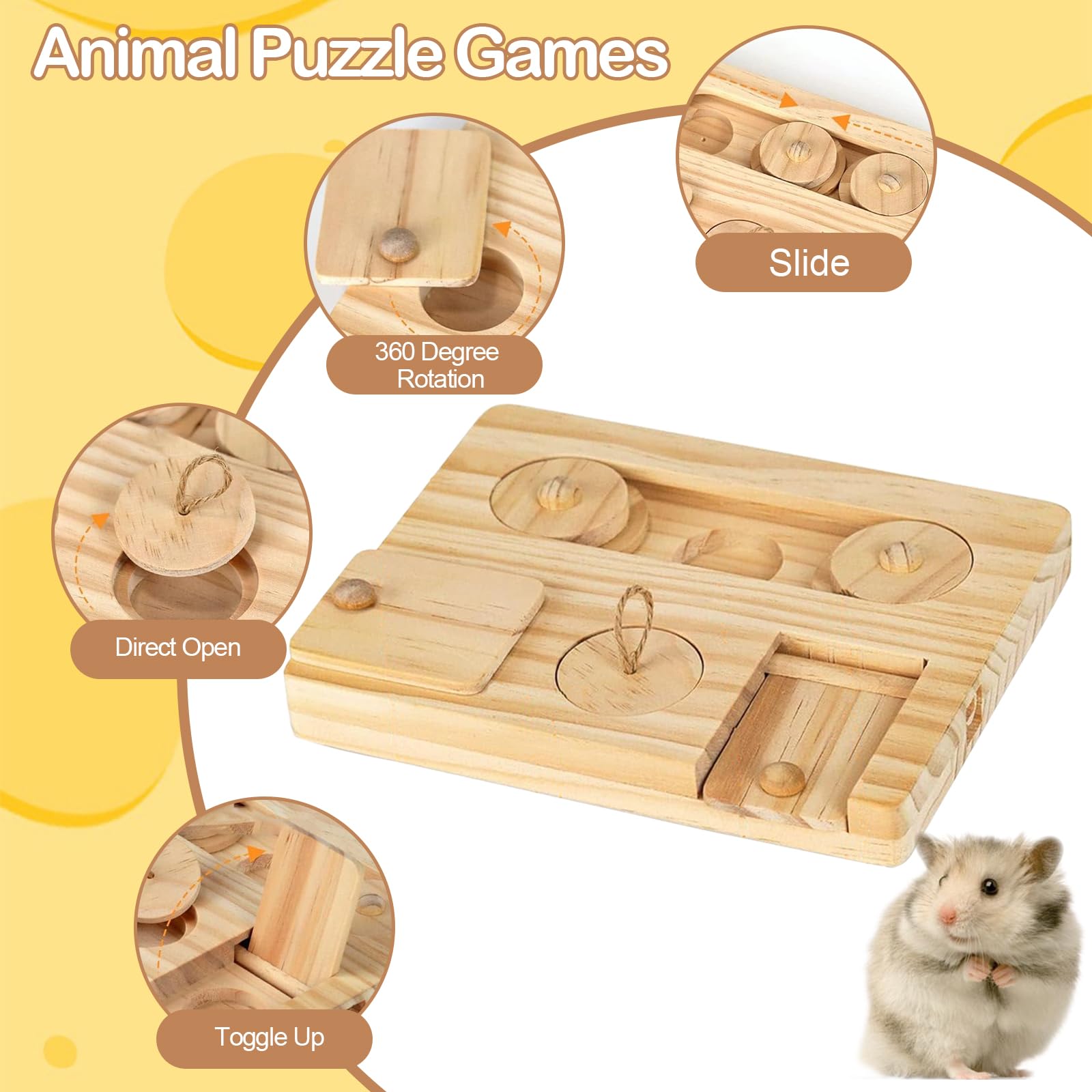 Ruikdly Giochi Criceto Giochi, Giochi Per Criceti Naturale Di Legno Giochi Coniglio, 6 In 1 Giocattoli In Legno, Adatto A Cavie, Conigli, Cincillà E Criceti