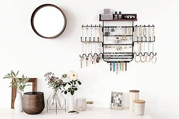 💟 Le 6 aste di ferro dal design unico possono essere estratte e regolate a piacere e ruotano una volta inserite nei fori su entrambi i lati. x supporti girevoli per collane, orecchini, bracciali e anelli – Pratica soluzione per riporre i tuoi gioielli. 29,99€29,99 1 Ripiano in legno 2 Supporto per catena 3 Supporto per anelli 4 Porta orecchini 5 Supporto per bracciale Portagioie da parete unico – Mostra i tuoi gioielli tutto il giorno Le vostre collane si aggrovigliano sempre? Non trovi mai l'orecchino adatto? Liberatevi da questo disordine e mettete ordine nei vostri gioielli e nella vostra vita! Organizza i tuoi accessori con questo bellissimo organizer rustico e illumina i tuoi gioielli. Le 6 barre di ferro curve con un design unico su entrambi i lati sono utilizzate per appendere collane, bracciali, anelli, orologi e altri piccoli accessori. Puoi appenderlo ovunque nella tua camera da letto, nell'armadio, nella zona dei gioielli, ecc. La tavola superiore in legno serve come ripiano per cosmetici o piccoli oggetti decorativi. Le 6 file centrali di barre di ferro con fori e incavi per orecchini e borchie. Con il nostro ingegnoso portagioie da parete diventerai un maestro della conservazione dei gioielli: tutti i tuoi pezzi preferiti saranno esposti in modo ordinato ed elegante. Porta Gioiellerie Leroy Merlin Hanging - Organizer Per Gioielli Con 66 Tasche, Doppio Lato, Per Orecchini, Collane, Bracciali, Anelli, Armadietti Porta Gioielli Da Parete 💟 Design molto utile per vari pezzi di gioielleria. 💟 Un gran numero di orecchini, borchie, anelli, collane, bracciali, spille e accessori che si aggrovigliano può essere un vero incubo.
