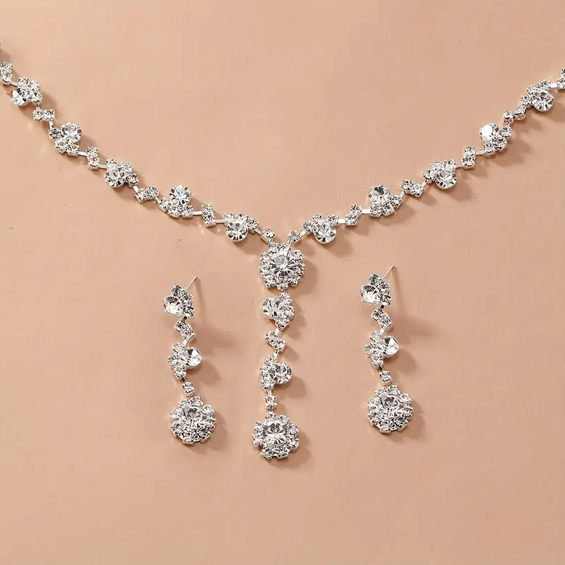 Un grande regalo per le donne, la madre, la mamma, la moglie, le ragazze, lei, il ballo di fine anno, San Valentino, Natale, il matrimonio, l'anniversario, il ringraziamento, la festa della mamma, i compleanni, il nuovo anno, ecc. Set di gioielli da sposa con strass Color argento orecchini collana matrimonio geometrico elegante romantico Set di gioielli da damigella d'onore all'ingrosso È un gioiello semplice e delicato, perfetto per essere indossato tutti i giorni ed è un ottimo regalo per la moglie in occasione dell'anniversario di matrimonio, per la fidanzata a San Valentino e per la mamma alla festa della mamma. Senza nichel, senza piombo e senza cadmio per evitare irritazioni. Gli strass sembrano tutti incastonati in modo sicuro. 💎Regali Perfetti per Lei: con il loro fascino classico ma moderno, questi set sono l'accessorio perfetto per te e un regalo per i tuoi cari nel loro giorno speciale. 💎Facile da Abbinare: I set di gioielli scintillanti zirconi sono adatti per varie occasioni come feste, matrimoni, abiti, ballo di fine anno, notti fuori, compleanni, s e così via; Se si veste questa splendida collana ovunque, vi farà risaltare nella folla. 💎Dimensioni del Set di Gioielli: La lunghezza della collana è di 45 cm + 5 cm. Set di gioielli perfetto per le donne signore. 💎Design Alla Moda: Pietre di cristallo scintillanti, sia al sole che sotto le luci delle feste, brilleranno. Gioielli Sposa Matrimonio Set Di Gioielli Da Sposa Di Qualà | SHEIN ALIA Vestopazzo Orecchini È molto sicuro e comodo da indossare senza causare allergie. Un romantico e splendido regalo d'amore, per tenere vicino a noi coloro che amiamo e per condividere questa buona energia e questo amore con gli altri.