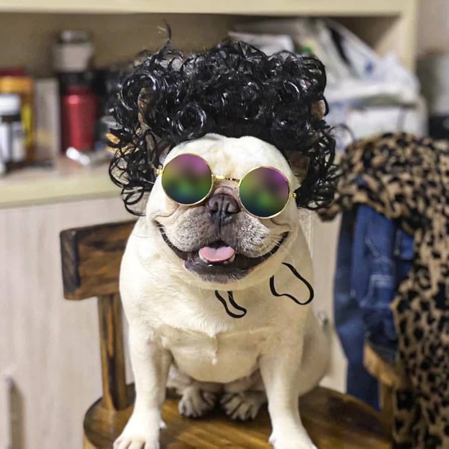 Divertente E Gioiosa Parrucca Per Cani Ricci Neri, Parrucca Cosplay Per