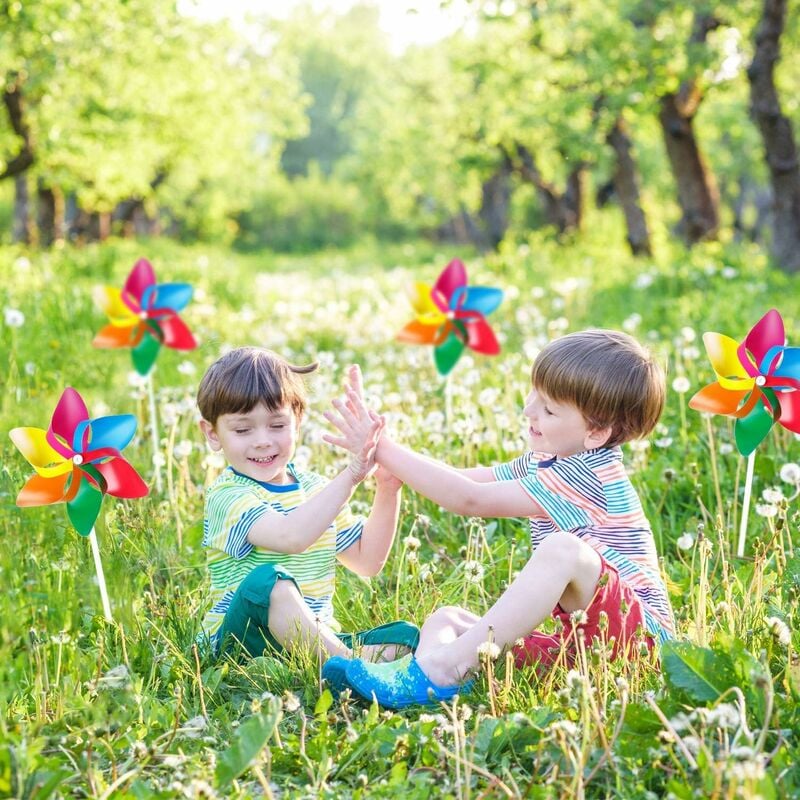 QINERSAW 100 Pezzi Girandole Colorate Girandole In Plastica Arcobaleno Girandole Da Giardino Girandole Bambini Per Prato Da Giardino, Fai Da Te, Per Feste Di Bambini