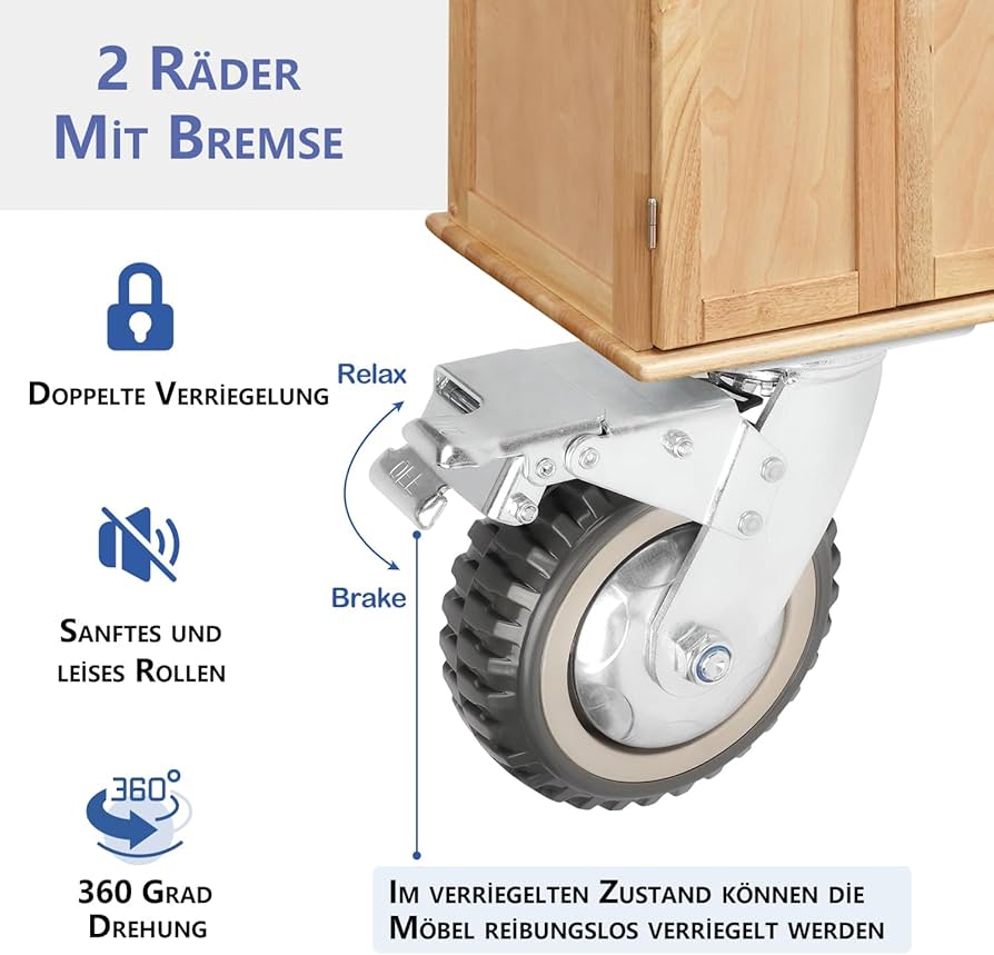 Ruote perfette per carrelli della spesa, banco da lavoro, stoccaggio sotto il letto, carrello della spesa, carrello della cucina, carrello degli attrezzi mobile, banco da lavoro, rimorchio, carrello, valigia, dolly e molto altro ancora. Design di pneumatici fuoristrada Le ruote sono progettate per imitare gli pneumatici fuori strada, la superficie concava convessa ha una forte presa, antiscivolo e silenziosa, molto silenziosa, assorbe urti e vibrazioni. Con queste ruote girevoli potrete spostare facilmente mobili, pallet, elettrodomestici e altro. Per fare ciò vi basterà avvitare le ruote al piano a alla tavola che desiderate rendere mobile. Le rotelle sono girevoli a 360°, resistenti e con un'alta capac Grazie all'elevata capacità di carico, le ruote pesanti con freno possono adattarsi a tutti gli scenari, dal tuo guardaroba al banco da lavoro, dal cortile all'officina, possono soddisfare tutte le tue esigenze di capacità di carico Questo rende il carrello più facile e più efficiente di manodopera. 2 ruote sono dotate di un meccanismo di bloccaggio del freno. La larghezza delle ruote è di 1,96 pollici, può essere facilmente affrontata con diverse strade complesse. Ampia applicazione : le ruote dell'armadio possono essere utilizzate per spostare pouf, tavolini, supporti per piante, ecc. Hanno prestazioni eccellenti nella stabilizzazione e nel movimento flessibile. 250 kg/551 lbs per ogni ruota, 750 kg/1653 lbs per 4 ruote girevoli. Supporto in acciaio Il supporto in acciaio è resistente alla corrosione e alla ruggine, forte e stabile e ha un'elevata capacità di carico. Ruote Girevoli Con Freno Huahuo 4 Ruote Girevoli Robuste Da 40 Mm, Ruote Silenziose A 360 Gradi Ruote Girevoli Per Carrelli Piastra di base ispessita Questa piastra di base da 6 pollici è ispessita, rinforzata, 4 controlli fissi, ampia gamma di applicazioni. Dimensioni: diametro ruota: 150 mm, larghezza ruota (circa ): 50 mm, altezza totale (dalla parte superiore della filettatura): 195 mm, capacità di carico combinata: 800 kg, dimensioni piastra: 100 mm x 114 mm x 6 mm È sicuro e facile da usare. Set di 4 ruote da 6 pollici Le ruote girevoli possono ruotare in modo flessibile e uniforme durante lo spinto. Per la maggior parte dei carrelli o carrelli standard, mobili, cassette degli attrezzi, macchine leggere, adatto per la maggior parte dei tipi di pavimentazione come casa, negozi, scuole e ospedali Design a doppio cuscinetto a sfera Questo rullo fuoristrada dispone di un doppio cuscinetto a sfera e la sfera ha un gambo ispessito e rinforzato per facilitare lo scorrimento del rullo. Doppio cuscinetto a sfera, facile da spingere, risparmio di manodopera.