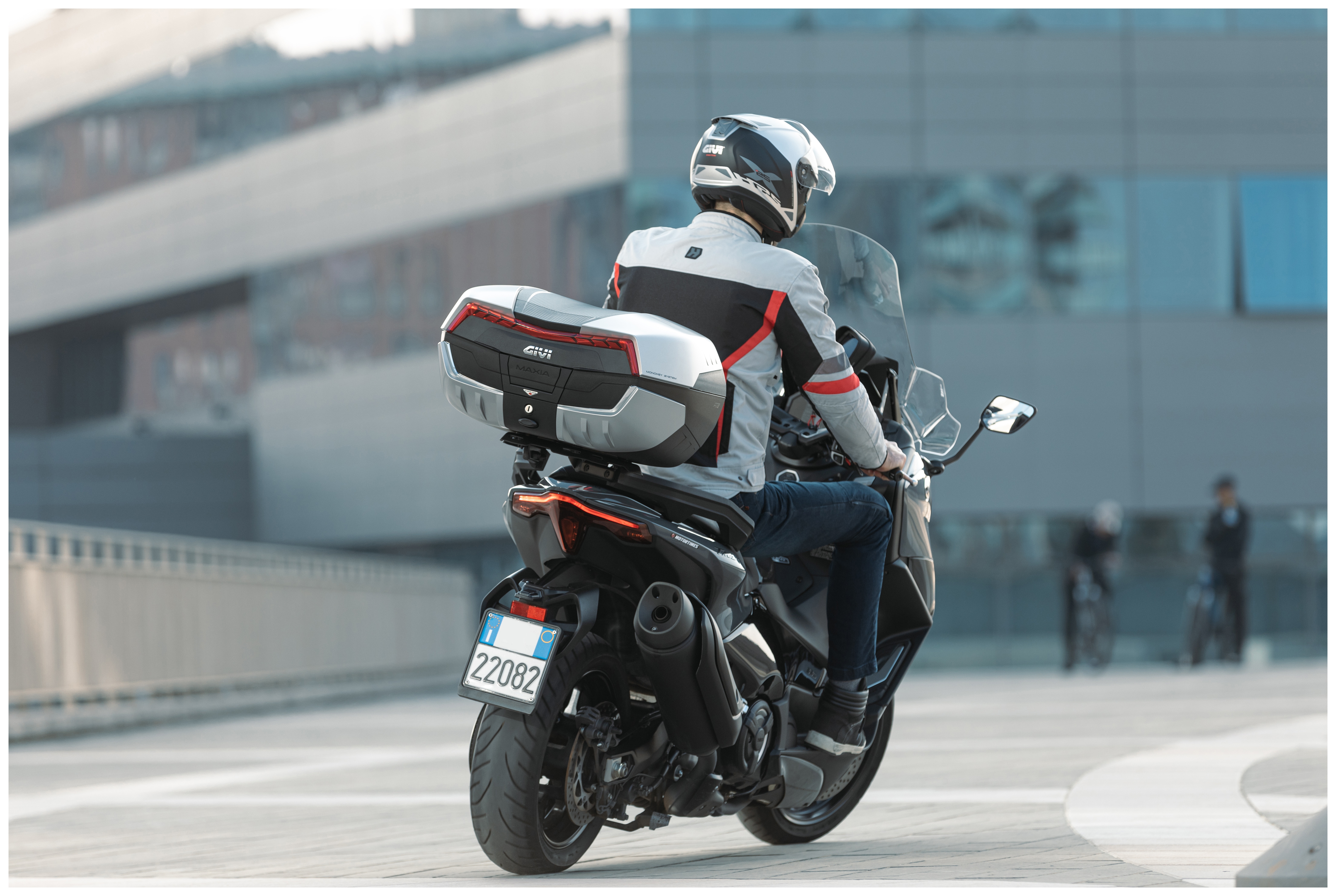 La maggiore aderenza tra i due gusci aumenta anche la sicurezza contro le effrazioni. Due eleganti fregi cromati sul fondo fanno da contrasto con le cover nero lucido. Givi V58N Maxia 5 Monokey Top Case - 58 Litre from the UK's leading online bike store. Free UK delivery over £25 and easy returns on our range of over 80,000 products Limited Edition Givi TOPCASE MAXIA 5 MONOKEY, 58L, KOLOR ALU Givi Ea113b Particolare attenzione anche a comfort e praticità durante il viaggio: schienalino nero in gommapiuma, acquistabile separatamente, cinghia elastica per mantenere stabile il contenuto e tappetino morbido applicato sul fondo evitano lo spostamento e la frizione degli oggetti trasportati. Un porta documenti in tessuto tecnico e la borsa interna dedicata sono disponibili come optional. Particolarmente adatto a chi ama fare grandi viaggi in moto, da solo o in compagnia, il bauletto Maxia 5 può ospitare 2 caschi modulari di grandi dimensioni pesando solo 5,4 kg. Di serie anche la rete elastica, ancorata al bauletto tramite i 4 ganci presenti sul fondo. Il rinnovato design della versione V58NNTB Tech richiama gli accostamenti cromatici di tendenza automobilistica: 4 cover nere verniciabili e un catadiottro trasparente con fotoincisione sul coperchio.