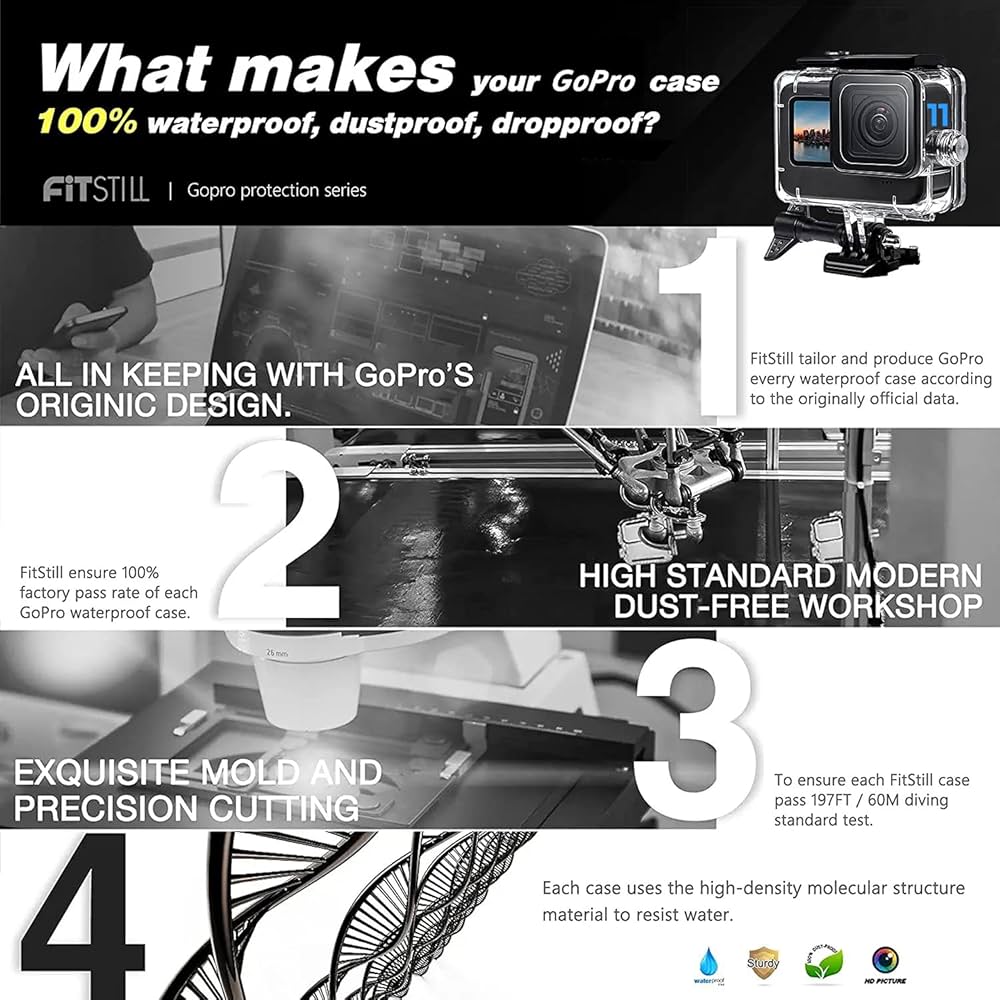 FitStill 80M/263FT Custodia Impermeabile In Lega Di Alluminio Per Go Pro Hero13/Hero12/Hero11/Hero10/Hero9 Black, Per Go Pro Hero 13/12/11/10/9 Black Action Camera Accessori