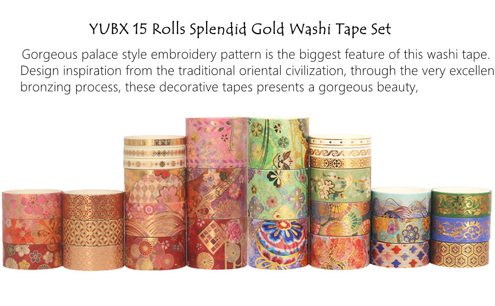 YUBX 16 Rotoli Gold Washi Tape Set Masking Tape Di Nastro Adesivo Decorativo VSCO Per Artigianato, Giornali Bullet Journals, Pianificatori, Scrapbooking, Packaging (Gold 16