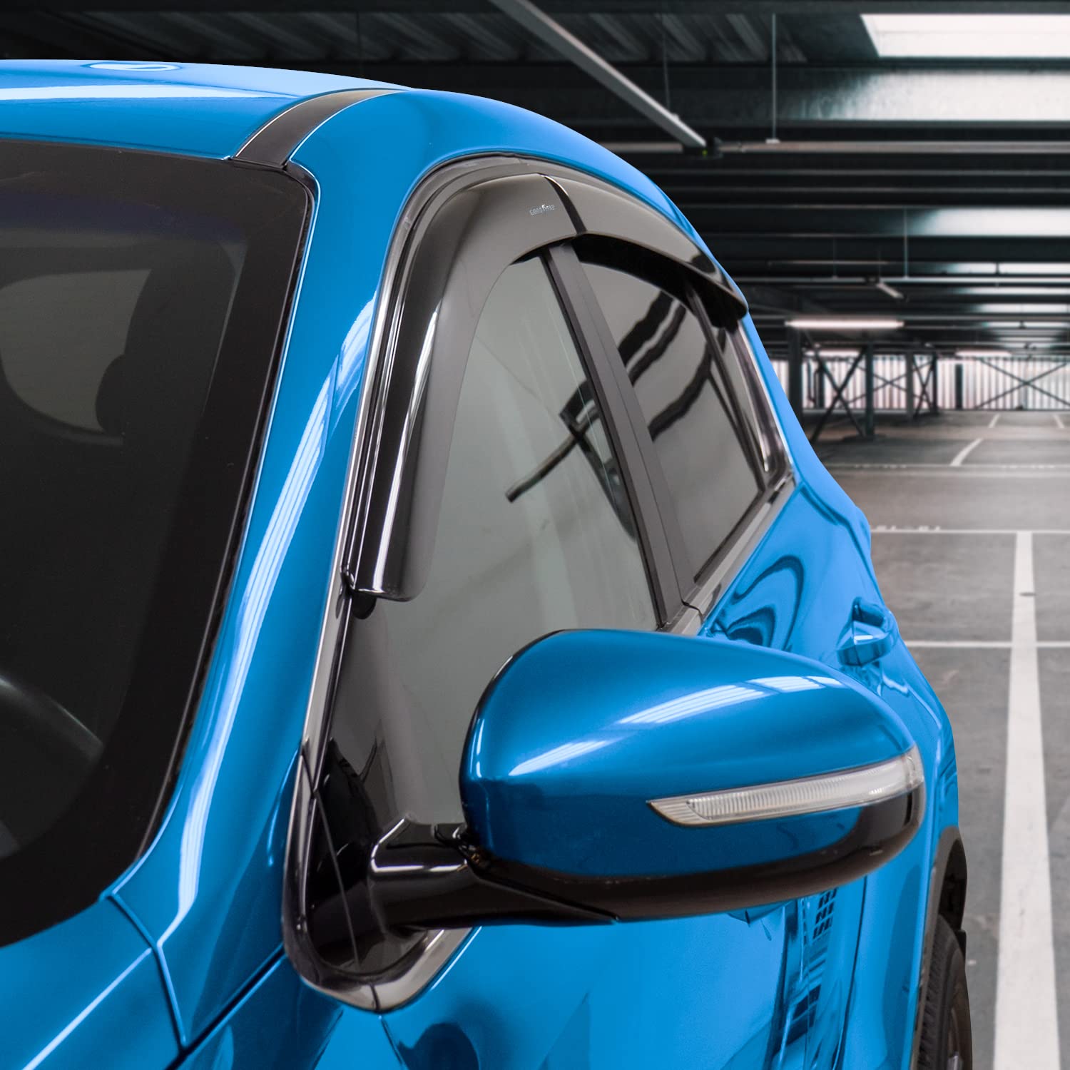 I deflettori finestrini auto non si strappano, rompono né si scheggiano, garantendo un viaggio confortevole. Inoltre, contribuiscono a diminuire il rumore della strada, rendendo i tuoi viaggi più silenziosi e confortevoli. AIRE FRESCO EN CUALQUIER CONDICIÓN: i deflettori antiturbo Goodyear consentono di guidare con i finestrini aperti sotto la pioggia, la neve o il sole, favorendo la circolazione dell'aria e migliorando il comfort di guida. CLIM ART Deflettori antiturbo Compatibile con Kia Sportage 2016-2021 QL - Accessori Auto - Deflettori finestrini - Deflettore Aria Auto - Protezione Meteo - Facilità di Installazione - Adesivo 4Pz N MONTAJE SIMPLE: il super resistente nastro 3M VHB garantisce una presa sicura senza allentamenti; il montaggio esterno è resistente all'acqua e resiste a tutte le condizioni atmosferiche, rendendo l'installazione facile e senza stress. Attenzione. Peugeot 3008 Goodyear Adesivo Deflettori Antiturbo Compatibile Con Ford Focus III (hatchback) 10-17 - Accessori Auto - Deflettori Finestrini -Deflettore Aria Auto Fiat 500l Proteggono efficacemente il conducente dai raggi UV, riducendo così l'impatto del sole e rendendo la guida più piacevole. Non è necessario rimuovere le staffe superiori degli specchietti, così puoi immediatamente godere del comfort e della protezione migliorati che i deflettori finestrini auto offrono per il tuo Kia Sportage. L'acquisto dei deflettori auto protegge l'interno del tuo veicolo e garantisce una guida confortevole in tutte le stagioni. Il loro colore rimane vivido e durevole, anno dopo anno. La loro forma sottile ma distintiva si integra perfettamente e accentua l'immagine estetica complessiva, conferendo al tuo veicolo una presenza più raffinata e moderna, mantenendo al contempo le sue funzionalità pratiche.
