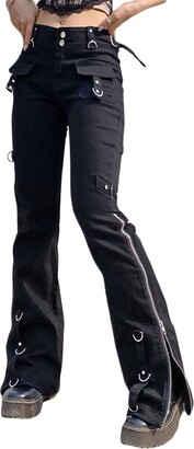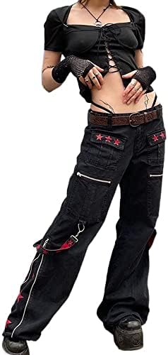 Women Y2k Wide Leg Jeans Gothic Baggy Denim Pants High Waist Punk Loose Straight Pants E Girl Hip Hop Streetwear Product description 1. Pants can perfectly fit your unique body shape, allowing you to move comfortably throughout the day. 2. The elastic com Materiale: Poliestere, Colore: Nero, Taglia: S/M/L Abbinamento: pantaloni gotici da donna, i jeans da donna a vita alta sono perfetti da abbinare a crop top, canottiere, corsetti, camisole, camicie, felpe con cappuccio e magliette. Jeans Larghi Donna MAEHARRT Women Y2K High Waisted Jeans Gothic Baggy Gothic Cargo Jeans Wide Straight Leg Punk Denim Pants Loose Trousers Streetwear Baggy Jeans Donna Per ragazze d'avanguardia, goth, punk, dark grunge, emo, y2k, stile hip hop, moda harajuku, moda kpop, moda unica Caratteristiche: pantaloni gotici, pantaloni neri con abbellimento rosso, con metallo alla moda, tessuto ampio e traspirante, possono muoversi liberamente, jeans Y2k, con spalline sulla parte superiore e inferiore dei pantaloni, pannelli a vento dal design distintivo, consumano il tuo colore del vento personale.