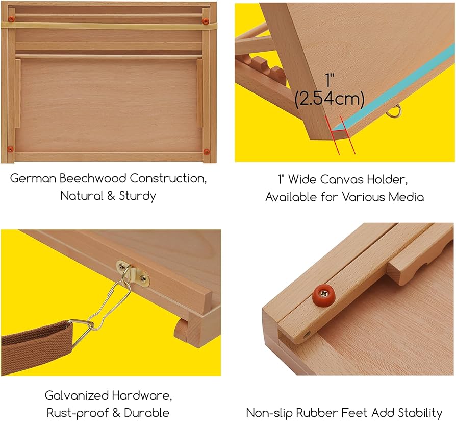 Realizzato in legno di faggio da studio, questo cavalletto da scrivania regolabile può contenere facilmente carta, tavole, quaderni da disegno, tele. Fornisce una robusta superficie di lavoro per tele di dimensioni fino al formato A3 Banco da lavoro HBM con piano in legno massiccio, regolabile in altezza, 122 cm Cavalletto Da Tavolo - Grande Cavalletto Regolabile Per Tavolo Da Lavoro, Con Supporto Da Tavolo Cavalletto Da Tavolo Da Dipingere Dimensioni: 36,2 cm x 47 cm x 8 cm. Legno di faggio di alta qualità: lavorazione artigianale di qualità in ogni dettaglio, questo cavalletto da tavolo è realizzato in legno di faggio massiccio, molto ben costruito e robusto. Ampia applicazione: perfetto per tutti, dai principianti agli artisti professionisti. La base di 2 cm mantiene il lavoro in posizione. Create Lee - Cavalletto da tavolo, formato A3