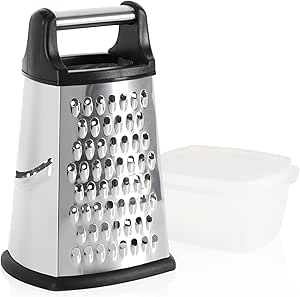 Versatile: La grattugia grattugia senza sforzo diversi tipi di formaggio ed è ideale per frutta, verdura e altri ingredienti duri e morbidi che devono essere tritati! 23,5 x 14,5 x 11,5 cm (altezza x larghezza x profondità), dimensioni scatola: ca. 14,5 x 11,5 x 7 cm (lunghezza x larghezza x altezza) Materiale: acciaio inossidabile, plastica Colore: argento, trasparente, nero Acquista ora la nostra pratica grattugia da cucina con quattro diverse opzioni di taglio! PULIZIA: La grattugia da cucina può essere pulita solo a mano. COM FOUR® grattugia da cucina con contenitore di raccolta e affettaverdure in acciaio inox per frutta, verdura o formaggio (01 pezzi medio) ; Marchio, com-four Semplicemente veloce: Con questa grattugia manuale è possibile tritare un'ampia varietà di cibi in un attimo. SALVASPAZIO: Dopo aver utilizzato l'aiuto da cucina, il piccolo contenitore di raccolta può essere riposto dal basso nel corpo della grattugia per risparmiare spazio! Grattugia Formaggio Elettrica Grattugia 3 In 1 Con Contenitore Misurino E Tappo Dosatore | Leroy Merlin Farina Di Cocco Grattugia da cucina con contenitore di raccolta - versatile grattugia da cucina e affettaverdure in acciaio inox - grattugia per frutta, verdura o formaggio con contenitore di raccolta chiudibile a chiave Alla ricerca di un ottimo modo per tritare il cibo in modo rapido e semplice? Allora la nostra grattugia da cucina con contenitore di raccolta fa proprio al caso tuo! AMBITO DI CONSEGNA: 1x grattugia da cucina, 1x contenitore // dimensioni grattugia: ca. Pulizia: La grattugia da cucina può essere pulita solo a mano. FACILE E VELOCE: con questa grattugia manuale, un'ampia varietà di alimenti può essere tritata in un batter d'occhio. Risparmio di spazio: Dopo aver utilizzato l'aiuto da cucina, il piccolo contenitore di raccolta può essere riposto dal basso nel corpo della grattugia per risparmiare spazio. E questo in quattro diverse opzioni di taglio! 23,5 x 14,5 x 11,5 cm (altezza x larghezza x profondità) Dimensioni lattina: ca.