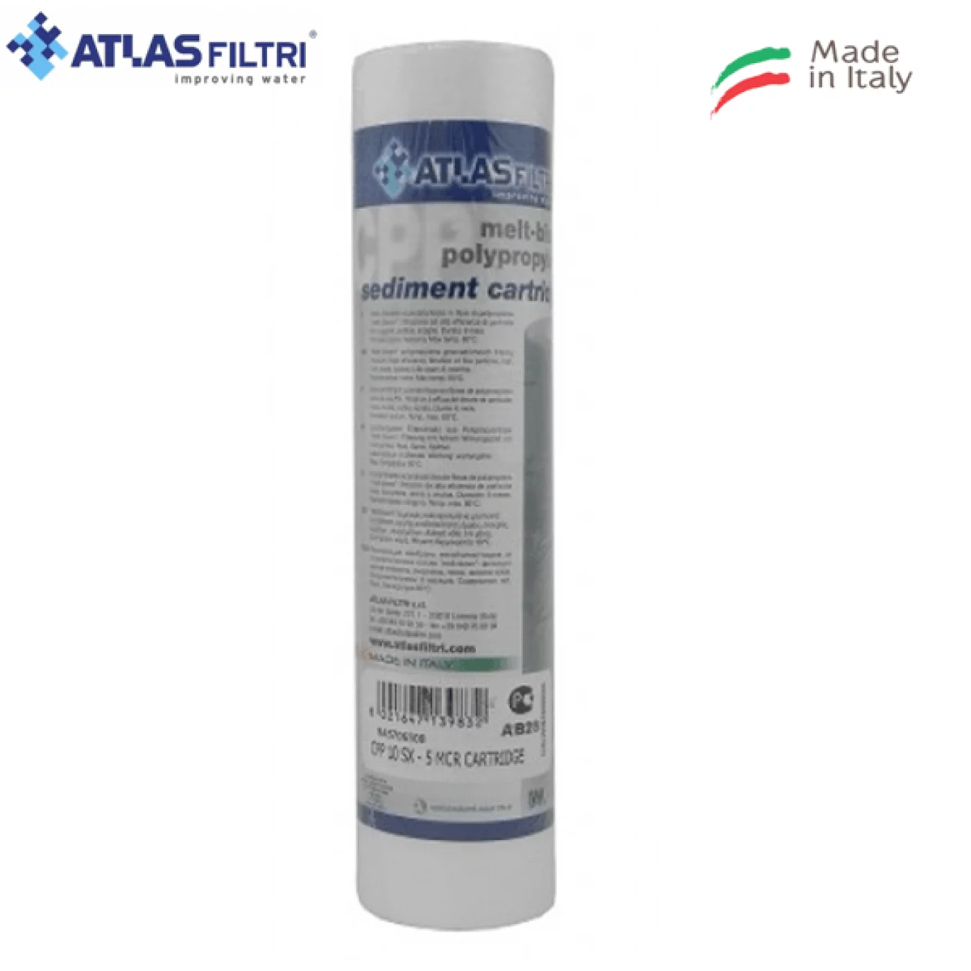 Filtro In Linea Sedimenti 5 Micron Green Filter Cartuccia Filtro Sedimento Poliestere Plissettato 20" - 1 Micron | Leroy Merlin Filtri CB AF CTO CARTUCCIA FILTRO A SEDIMENTI CARTUCCIA FILTRANTE IN POLPROPILENE 10 MICRON 5 Ideale per impianti Osmosi Inversa e Depuratori Acqua. CARTUCCIA POLIPROPILENE PP5 10 micron 5 SET 6 PEZZI La Cartuccia polipropilene è prodotta con polipropilene 100% puro assicurando un grado di filtrazione ottimale. Costruita con filo di qualità e con struttura portante eccellente. Trattiene sedimenti, sabbia, sporcizia, impurità, ecc Le cartucce filtranti melt-blown in polipropilene sono prodotte in Italia da Atlas FIltri costruite in un unico blocco ad alta resistenza meccanica, senza anima interna né piattelli. ATLAS CARTUCCIA POLIPROPILENE 10 micron 5 SET 6 PEZZI La Cartuccia polipropilene è prodotta con polipropilene 100% puro assicurando un grado di filtrazione ottimale. Specifiche Tecniche Materile impiegato:Polipropilene Pressione d'esercizio max: 3,5 bar Temperatura max d'esercizio: 80° Altezza:10(pollici) 25,2 cm Diametro Esterno: 6,3 cm Diametro Interno: 2,7 cm Grado di filtrazione: 5 micron Portata Ottimale:4,9 lt/min Sostituzione: ogni 3/6 mesi in base al tipo di acqua La Cartuccia polipropilene è prodotta con puro polipropilene 100% assicurando un grado di filtrazione ottimale.