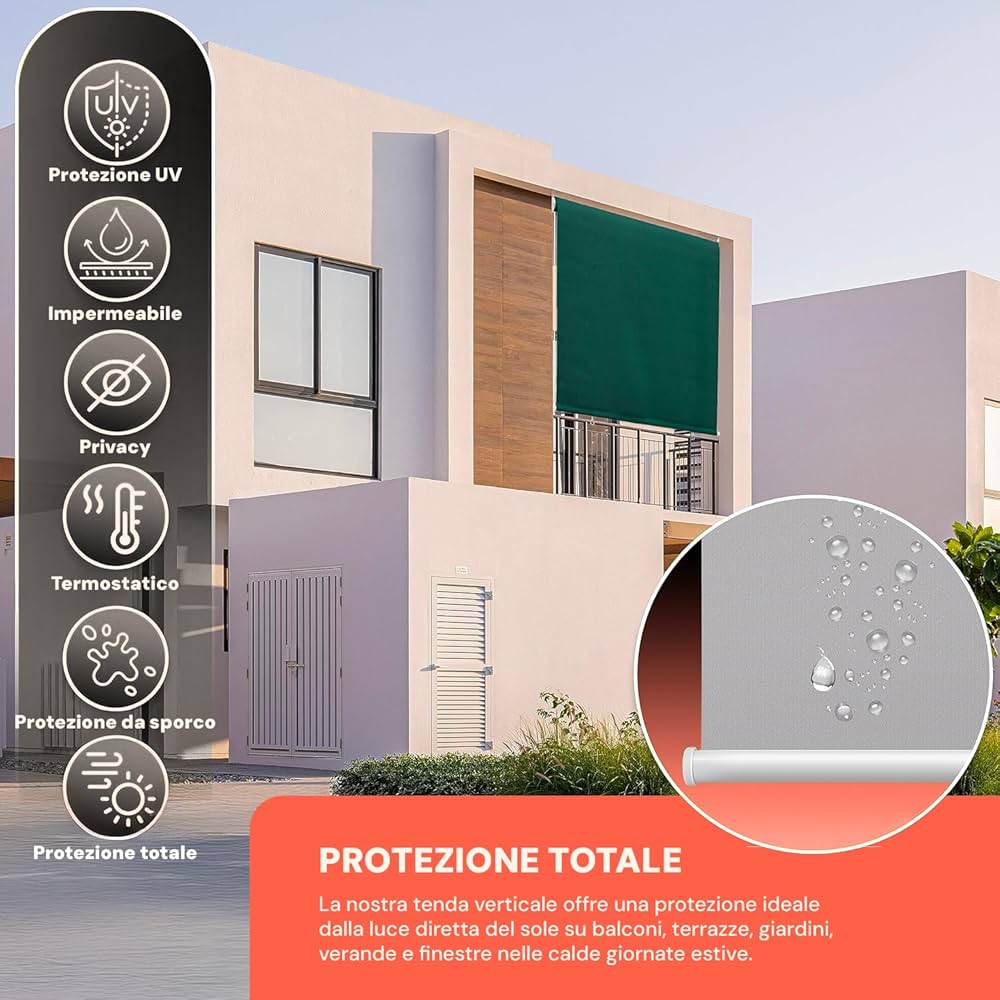 Con il suo design elegante e funzionale, si adatta a qualsiasi tipo di arredamento esterno e ti permette di goderti al massimo le belle giornate. Facile regolazione: Il sistema a rullo e la carrucola consentono di regolare facilmente la tenda per ottenere l’ombra desiderata con il minimo sforzo. Amiamo le persone e da esse prendiamo ispirazione, Avilia Home ti offre un catalogo pensato appositamente per la tua casa. Siamo un'azienda italiana nata nel 2008, con un vasto catalogo in continuo aggiornamento. Tenda da sole a caduta a rullo con telo a righe verdi con staffe al soffitto dotate di carrucola e perno in acciaio, apertura con cordicella. Ideale per ripararsi dal sole su balconi, terrazzi e giardini Avilia Home Tessuto resistente ai raggi UV Il colore verde dona un tocco di raffinatezza e si abbina perfettamente a qualsiasi ambiente esterno. Protezione contro i raggi UV: La tenda è realizzata in poliestere anti-UV 180 gr/m², garantendo ombra fresca e una protezione efficace dal sole. Tende A Rullo Per Esterno Tenda Da Sole A Caduta 200x250 Grigio Parasole Rullo Soffitto Terrazzo Balcone | Leroy Merlin Tende Da Sole Per Balconi Avilia Home Tenda da Sole a Caduta Verde La nostra tenda da sole a caduta è la soluzione perfetta per proteggere il tuo balcone o terrazzo dai raggi del sole e creare un angolo di relax all'aperto. Struttura resistente e durevole: Il rullo in alluminio da 44 mm e gli ingranaggi in acciaio assicurano una lunga durata e stabilità anche dopo un uso prolungato. Crea un angolo di privacy sul tuo balcone o terrazzo, proteggendoti da sguardi indiscreti. Dagli oggetti da cucina, fai da te e giardino. Ideale per l'estate, ma può essere utilizzata anche nelle mezze stagioni per proteggersi dal vento e dalla pioggia leggera. Protegge efficacemente da raggi UV dannosi, garantendo una protezione ottimale per te e i tuoi mobili da giardino. Benvenuti a casa Avilia Home è il riferimento per chi ama la casa, per chi ama acquistare online, per chi ama scoprire prodotti nuovi e innovativi.