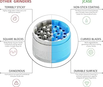 Grinder Erba Grinder In Alluminio – Grinder 4 Pezzi – Per Erbe, Spezie E Scomparto Grinder Per Spezie Grazie ai denti molto affilati del meccanismo di macinazione di alta qualità, il Cruncher offre un risultato di macinatura ottimale. La filettatura fluida impedisce che si inceppamenti e, grazie al magnete extra forte, il Crusher rimane saldamente chiuso. Questo grinder ha denti trituratori a forma di diamante, un magnete per tenere il coperchio saldamente fissato, uno schermo sottile per filtrare il polline e un anello di attrito in nylon, per evitare che particelle di alluminio finiscano nel tuo mix di fumatori Con una dimensione di 75 mm, il macinacaffè è perfetto per grandi quantità di erbe.