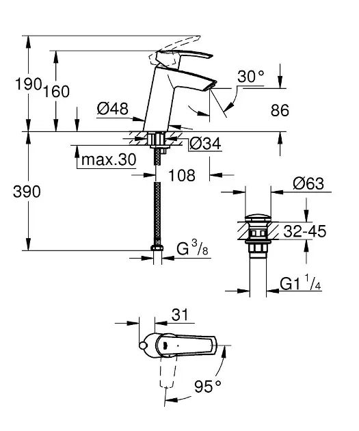 Grohe QuickFix Start è un miscelatore per lavabo monocomando con sistema di scarico Push-Open . Con questo meccanismo si spinge la piletta per chiuderla o aprirla. È semplice ed efficace. Ma questo vale anche per altre tecnologie La tecnologia GROHE Water Saving riduce il consumo di acqua fino al 50% senza compromettere le prestazioni Scopri tutti i prodotti della linea Matt Black Scopri anche il nostro topseller: Il sistema Doccia Vitalio Start 250 Risparmia tempo nell'installazione del tuo miscelatore per lavabo con GROHE QuickTool per un montaggio ancora più semplice e veloce Ecojoy Grohe Start Grohe QuickFix Start - Miscelatore Da Lavabo, Con Sistema Di Scarico Push Open Cromo 23746001 Grohe Quickfix Start Manual GROHE QuickFix: Sorprendentemente facile!